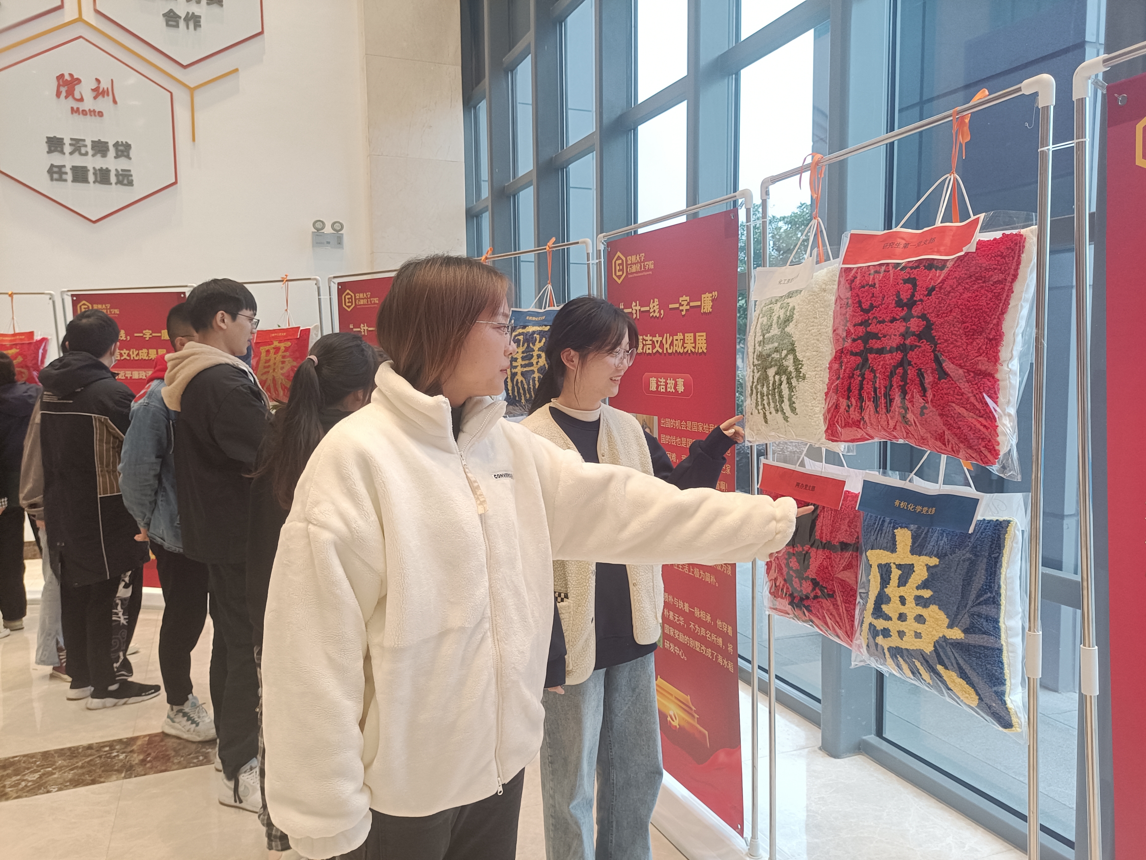 “廉”字故事交流会上,各支部代表共同研讨“廉”字的由来,讲述古今廉洁故事,领悟廉洁文化深刻内涵。“一针一线”戳戳绣活动中,师生党员以针为笔,以线为墨,通过一针一线绣“廉”字,使师生们感受到了坚守“廉”心、砥砺奋进的精神力量。本次廉洁文化成果在科教城校区测试实验楼大厅展出,进一步在师生中传递了廉洁理念,强化了师生的廉洁意识。(通讯员/曹婧妤 审核/管春英 编辑/庄媛)