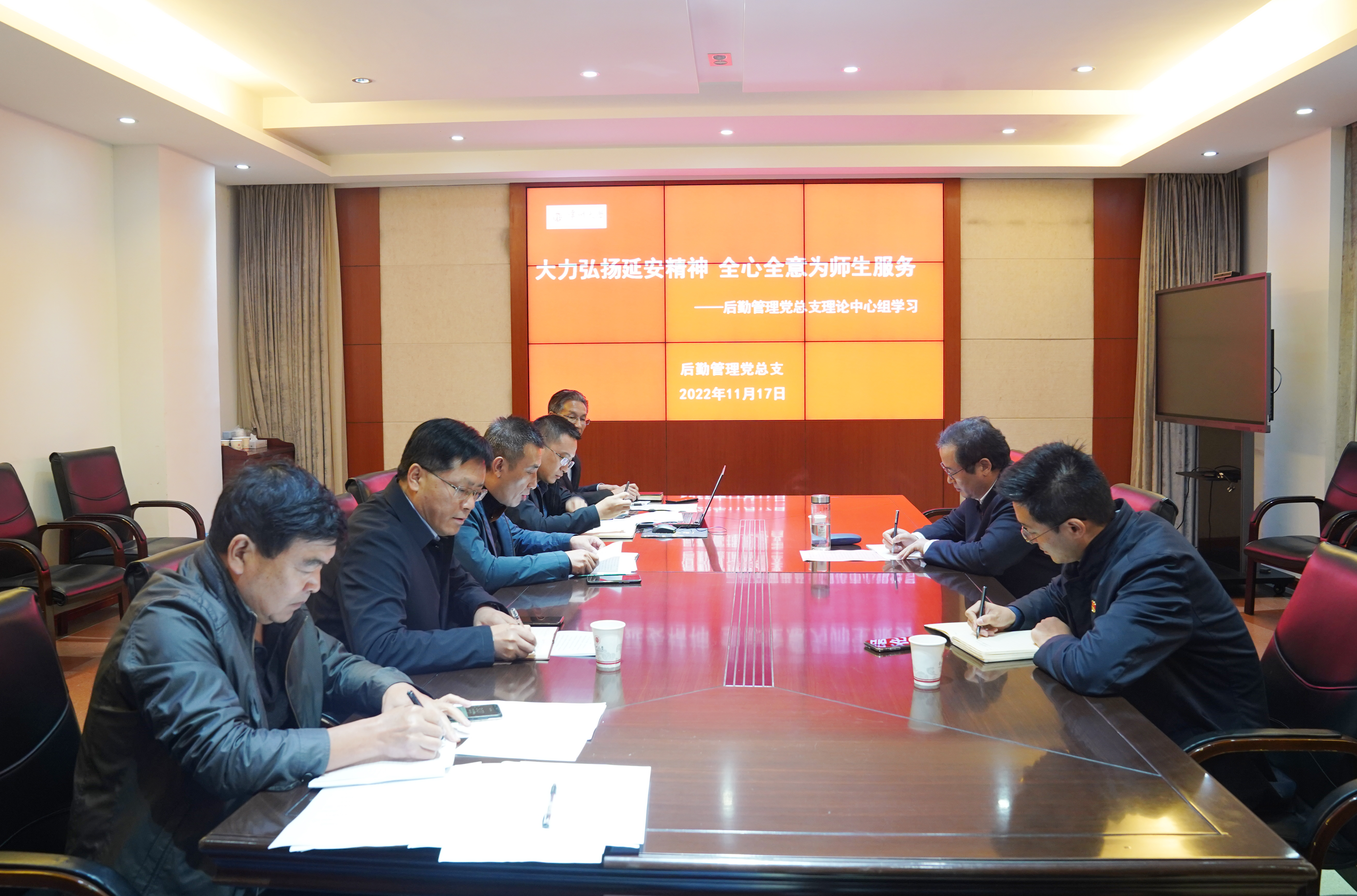 徐树法指出,本次学习主题鲜明,方向明确,成效显著,进一步坚定了党总支紧跟党中央、奋进新征程、建功新时代的思想自觉和行动自觉,进一步激发了踔厉奋发、勇毅前行的决心意志。他要求后勤管理党总支不忘初心、牢记使命,大力弘扬延安精神;加强学习,提升管理水平和服务质量,常态化推进“我为群众办实事”主题实践活动,进一步加强和完善校内基础设施和公共服务体系建设,提高后勤服务保障能力和水平;坚持身体力行,以上率下,提高党员干部的刚性执行力,把学校后勤保障事业持续向前推进,为学校高质量发展做出应有贡献。