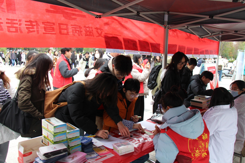 为进一步落实《江苏省艾滋病防治知识传播校园行活动方案》,推广和普及艾滋病防治知识,引导学生充分认识艾滋病的危害,了解艾滋病传播途径和预防措施,近日,常州市疾控中心联合常州大学医学与健康工程学院、药学院 生物与食品工程学院、后勤管理处医保中心,共同开展以“共抗艾滋,共享健康”为主题的艾滋病日宣传活动。