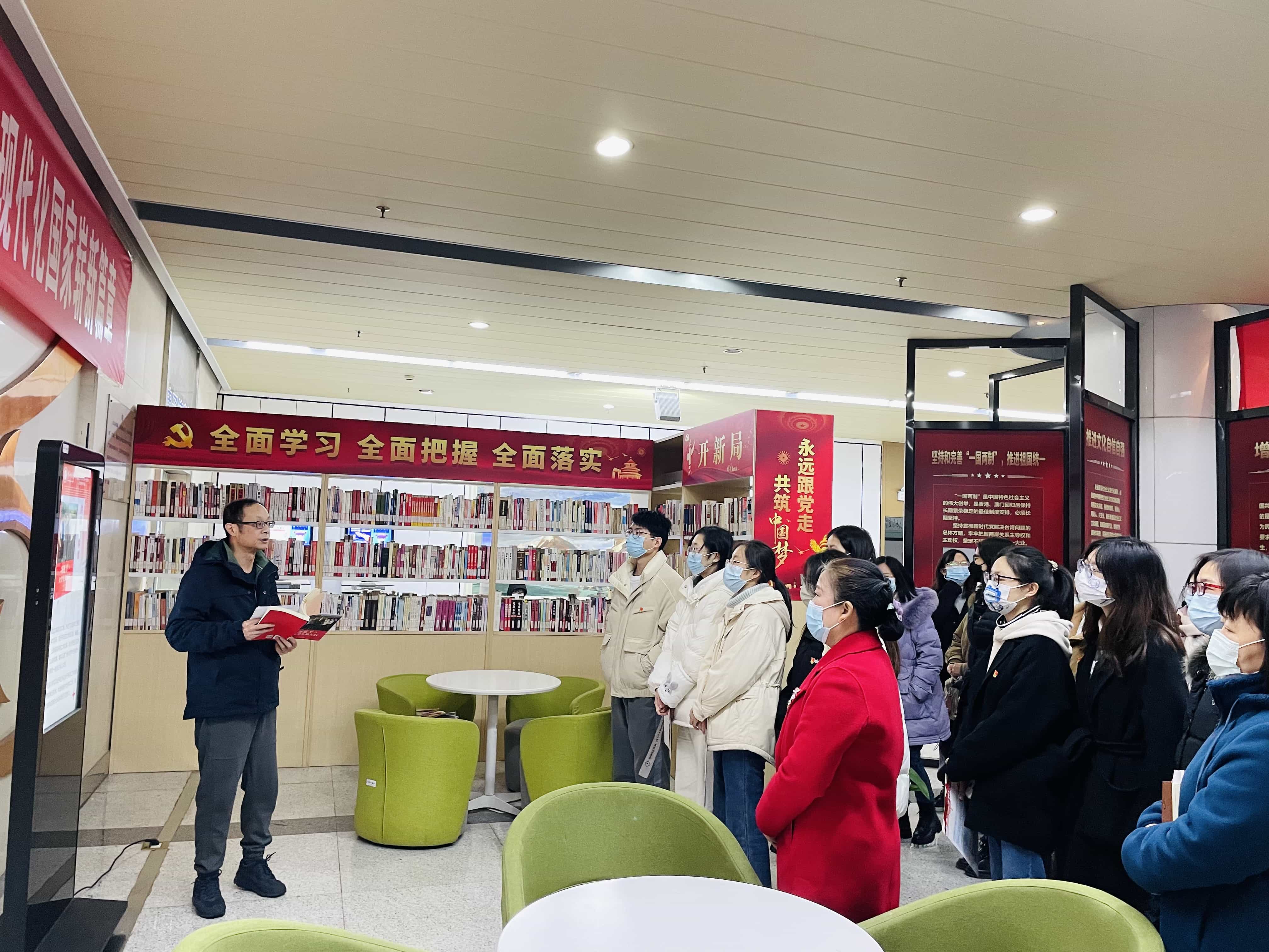双方党支部党员到图书馆二楼参观由图书馆联合马克思主义学院共同举办的“弘扬红文化奋进新征程”学习贯彻党的二十大精神专题书展和图片展,并开展了共读一本书活动。图书馆相关负责人向全体党员荐读《习近平与大学生朋友们》,本书以“当事人讲当年事”的形式,全景展现了习近平总书记在从政不同时期同青年大学生交流交心交友的故事,大家学习了习近平总书记对青年的殷切希望,纷纷表示将勇担强国使命,不负时代,不负韶华,以青春之我奉献青春之中国,以昂扬的斗志投身到实现中华民族伟大复兴中去。后续,双方党员将围绕该书进一步开展读书分享活动。