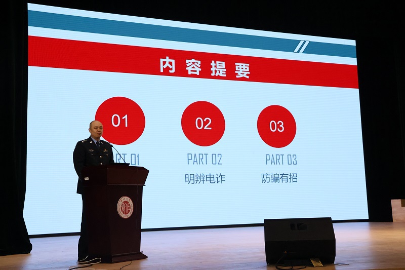 谢剑作“浅谈大学校园如何防范电信网络诈骗”主题报告