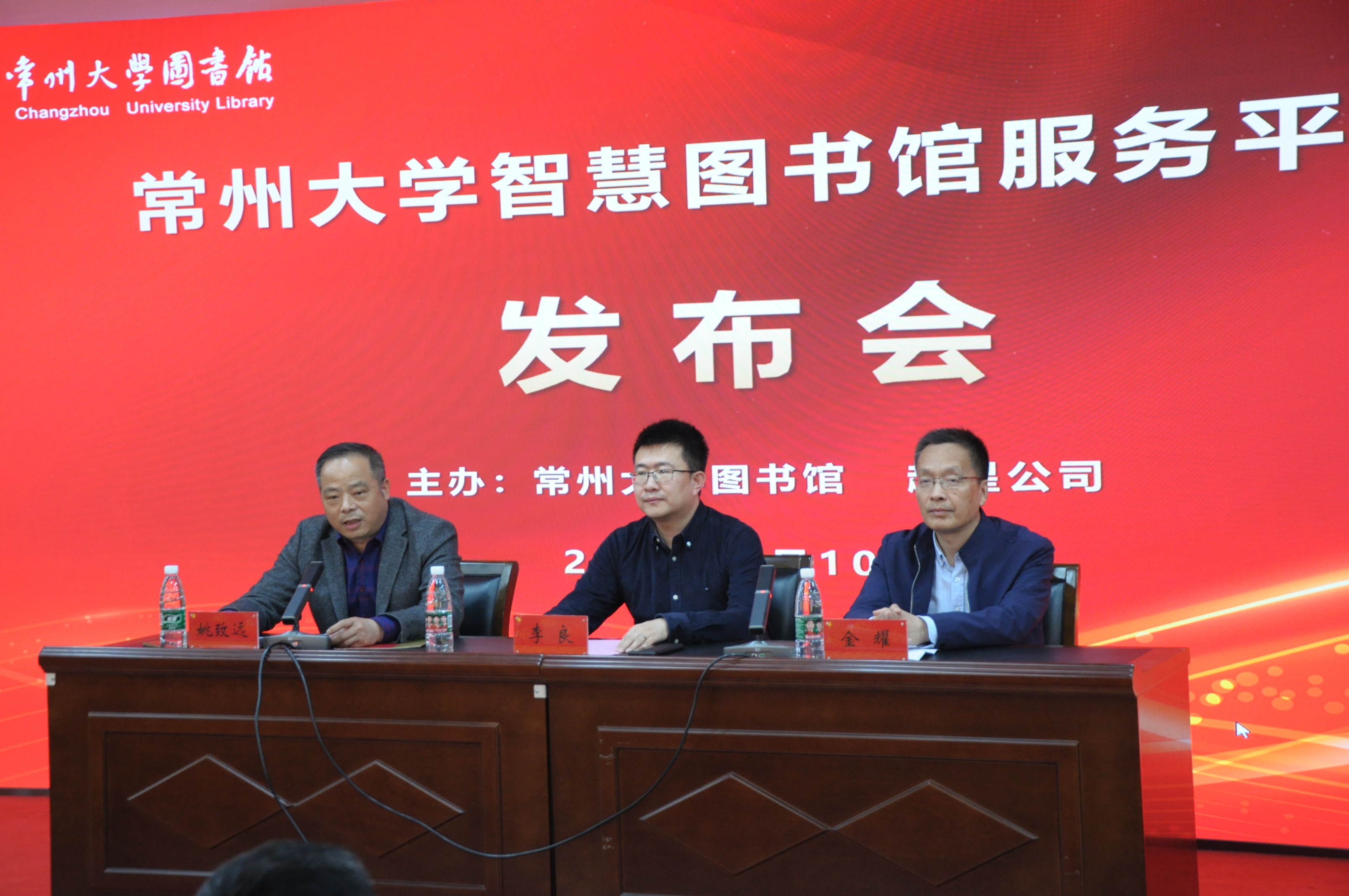 3月10日下午,常州大学新一代智慧图书馆服务平台发布会在科教城校区图书馆六楼报告厅举行。常州大学直属单位党委书记、图书馆副馆长姚致远,常州大学图书馆馆长金耀,超星集团有限公司副总经理、南京分公司总经理李良,全市各高校图书馆馆长及部主任50余人出席发布会。姚致远主持会议。