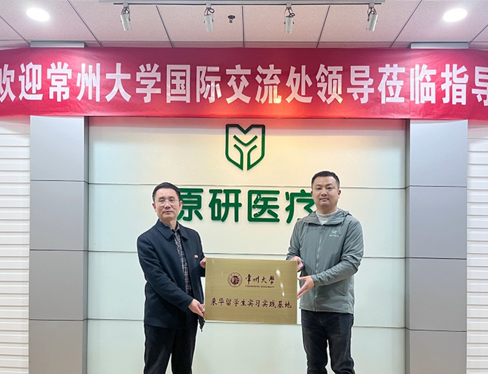 孙刚详细介绍了原研医疗器械(常州)有限公司发展历程及国际学生需求情况。储志新介绍了常州大学留学生招生、人才培养及就业等情况。魏伟与孙刚共同为来华留学生实习实践基地揭牌。