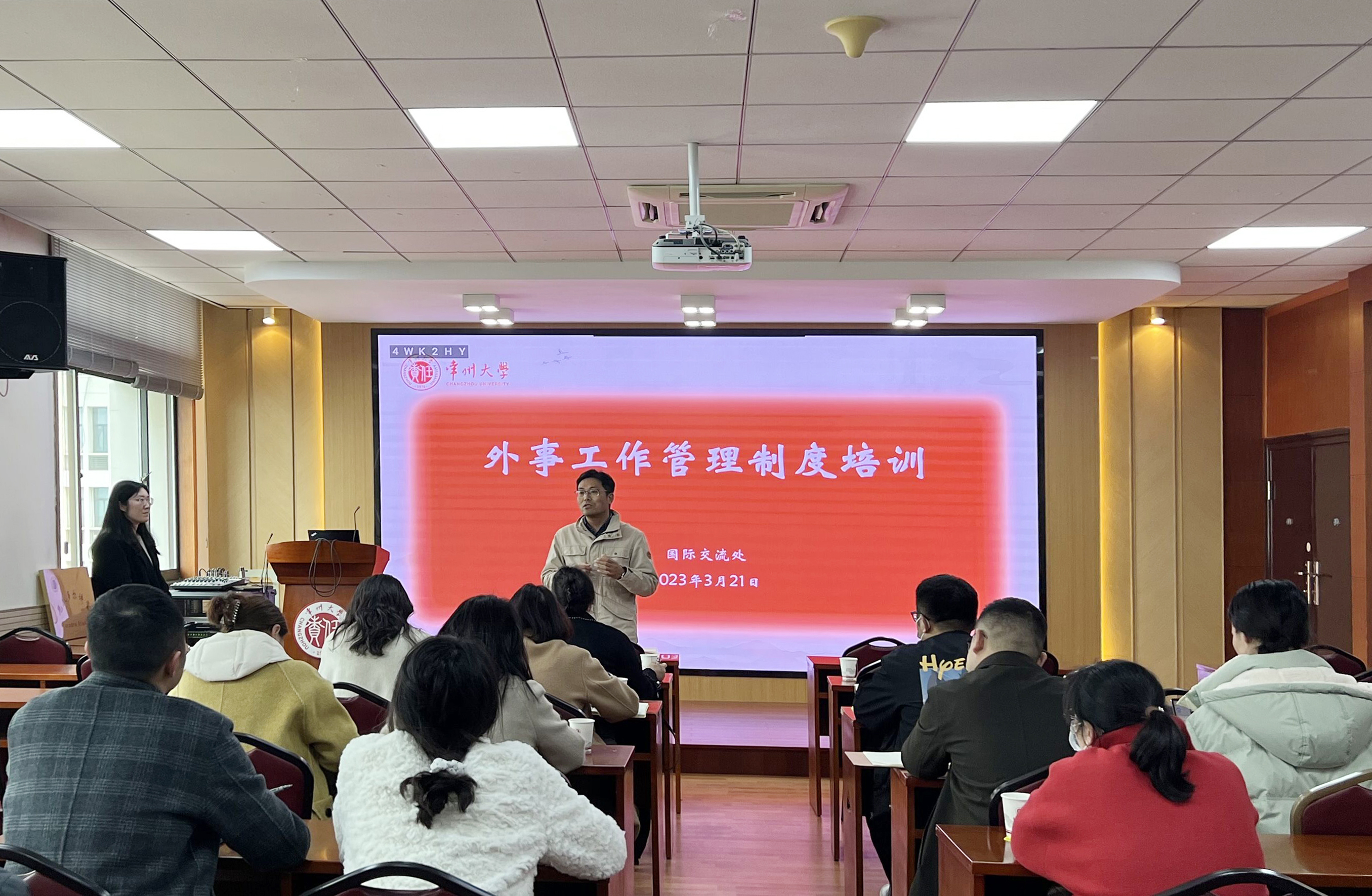 为进一步规范我校外事工作,增强各部门各学院涉外活动保密意识,3月21日,国际交流处举办全校外事管理制度培训会,各学院国际交流工作联络员参加培训,跨文化研究院院长、国际交流处副处长杜志峰作动员讲话。