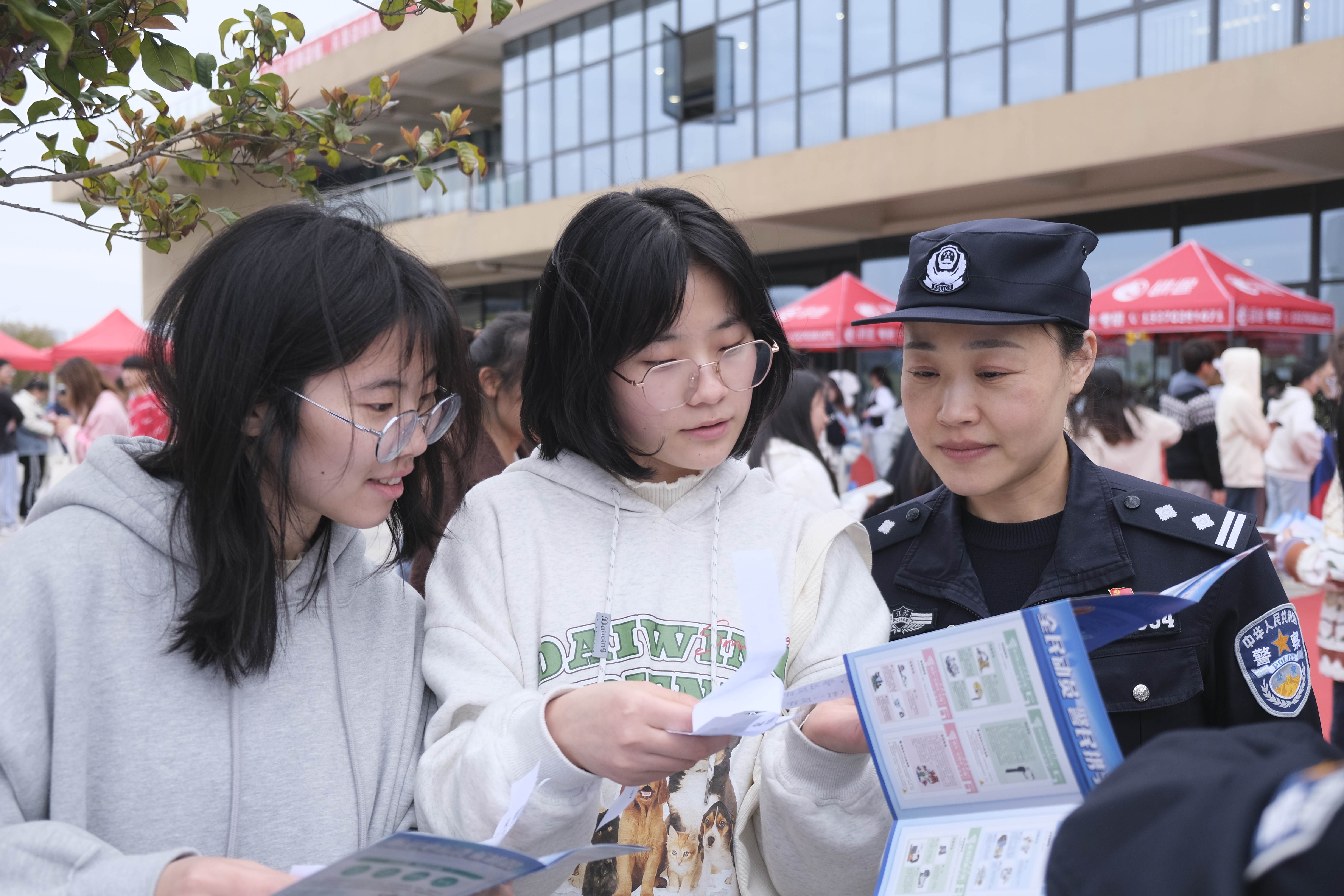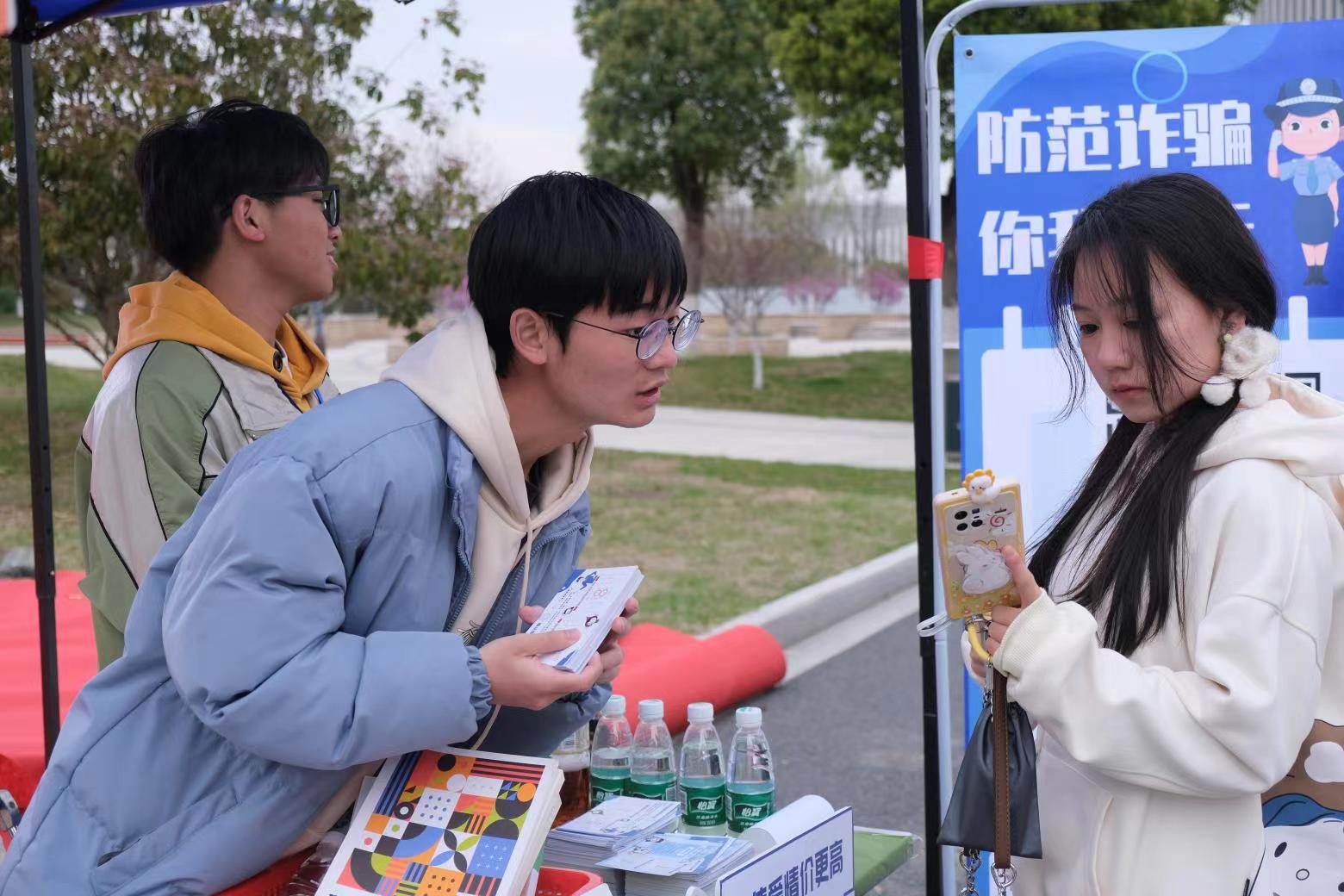 为进一步提高学生对各类诈骗方式的鉴别能力和自我防范意识,近日,由西太湖校区管理委员会、商学院 刘国钧管理学院主办的“校警联动共防骗 清朗校园反诈行”系列活动正式启动。常州市武进区公安局滆湖派出所民警来校开展防诈、反诈宣传活动。