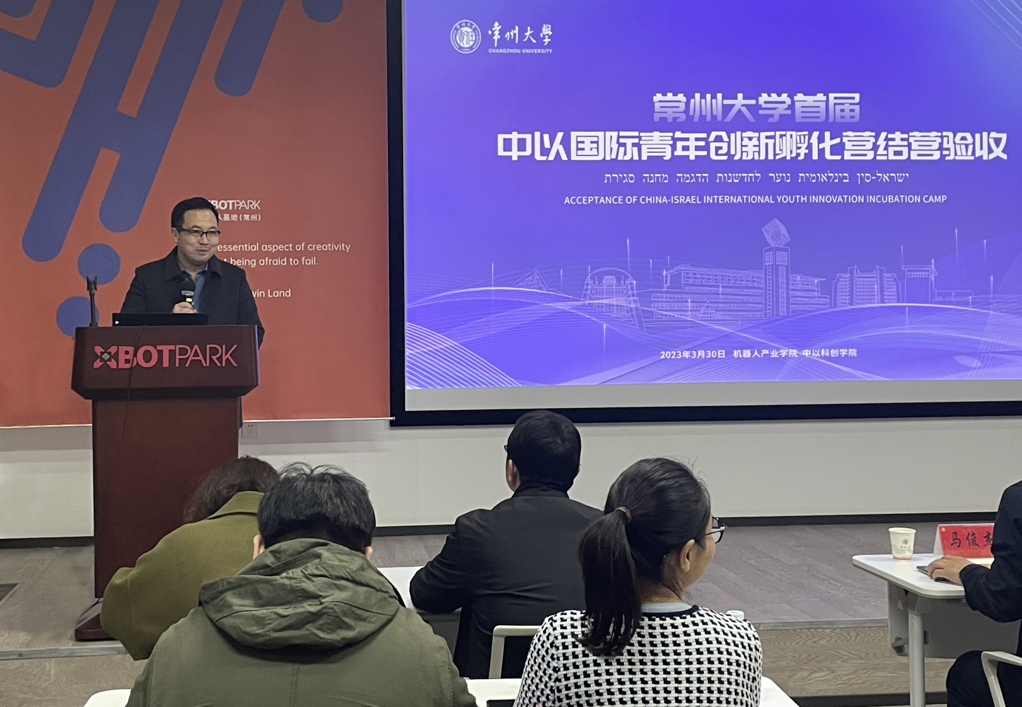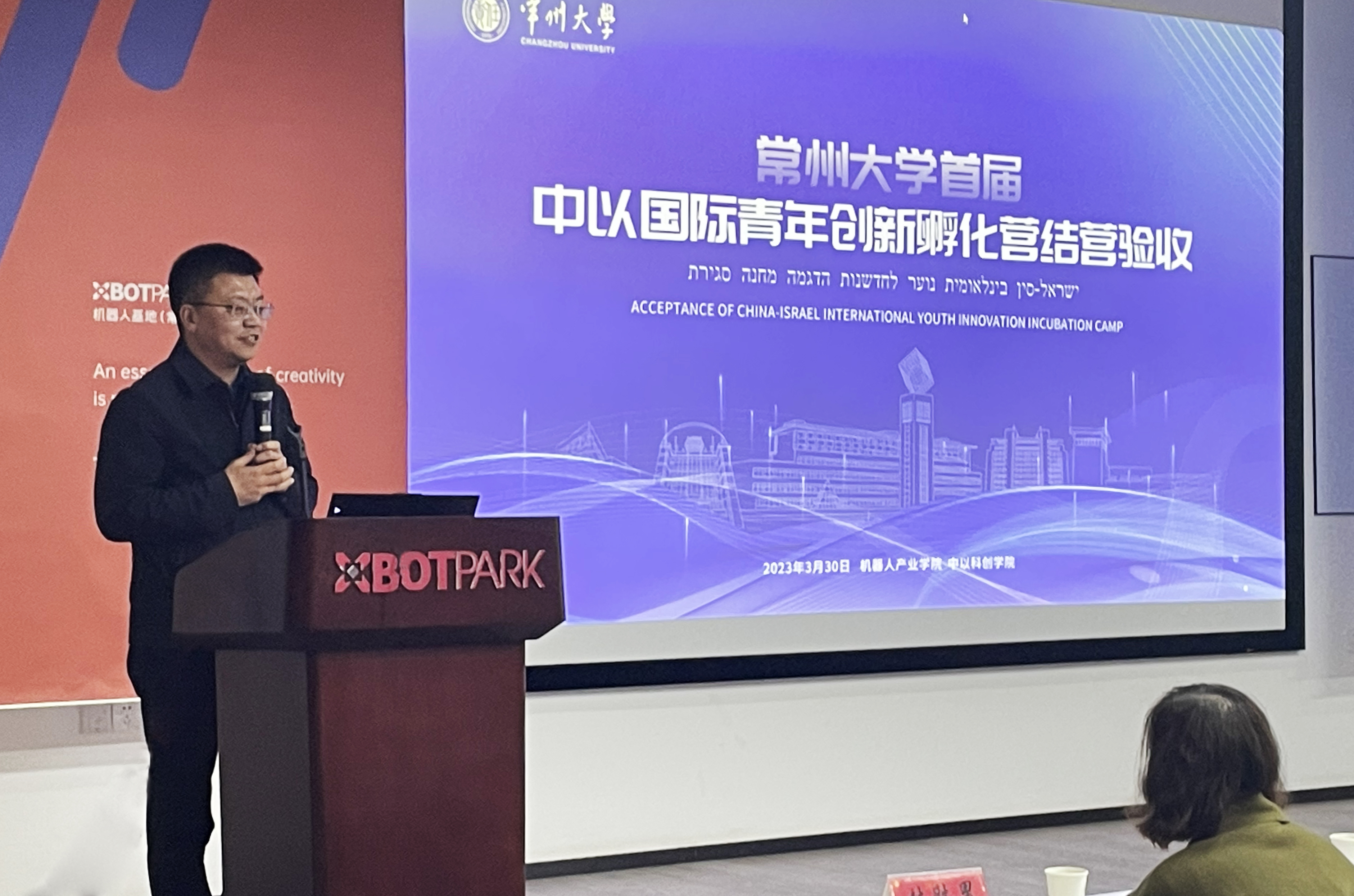 3月30日下午,常州大学首期中以国际青年创新孵化营结营验收在机器人产业学院C717室举行。北航常州智能物联创新中心总经理马俊杰、常州固立高端装备创新中心项目部负责人蔡峰涛、上海科创基金投资经理Victoria Liu出席活动,常州大学创新创业学院、机器人产业学院 中以科创学院、采购与招标管理办公室相关负责人参加活动。常州青瓴科技创业有限责任公司总经理王宇、项目总监王阿钰、项目经理安笑辉,以色列ZOI集团创始人、微软加速器导师Eti Vidavsky,法兰克福歌德大学生物化学博士Juliane Hitzel作为孵化营导师代表先后发言。