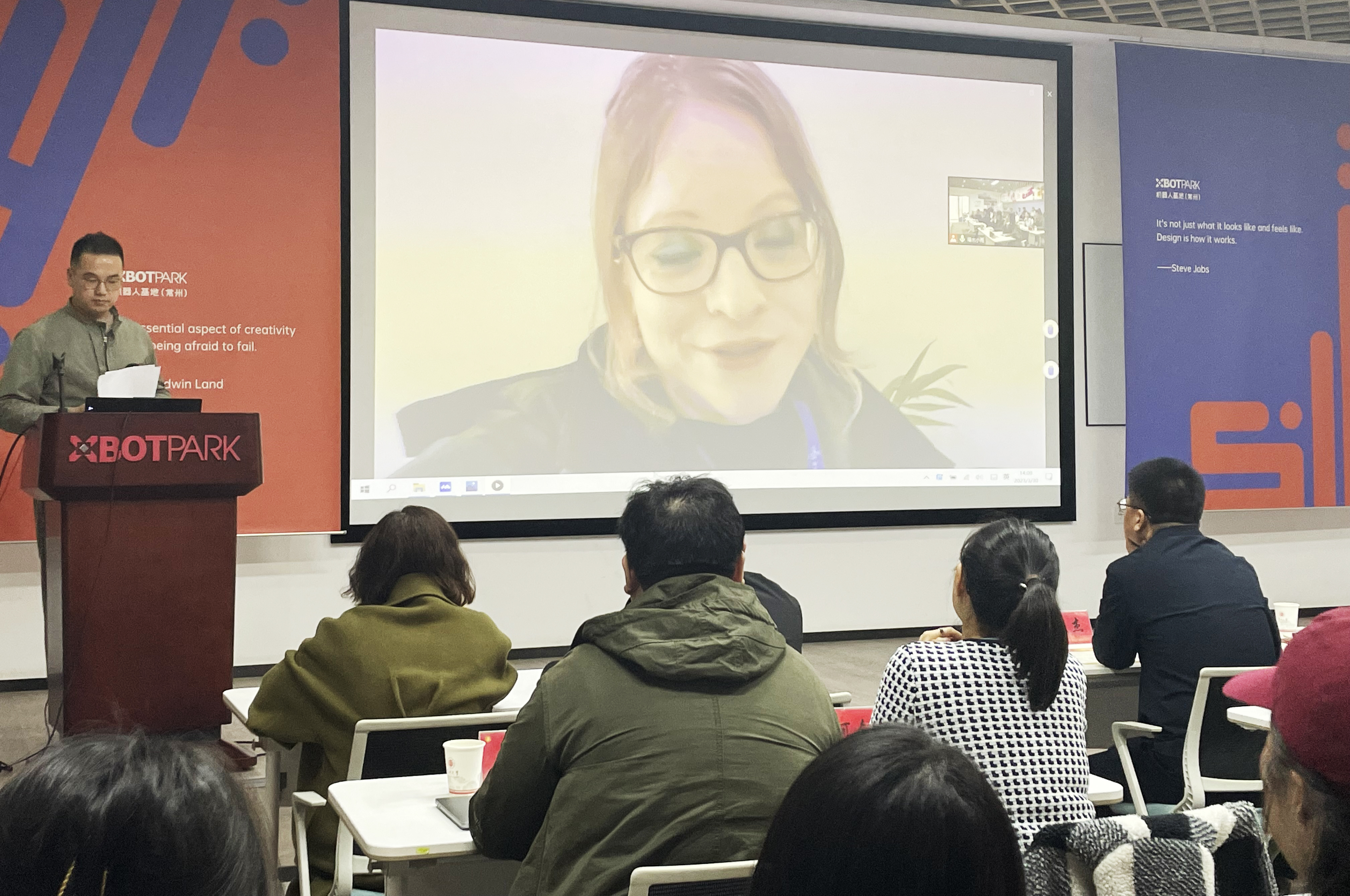 导师代表王宇(线下)、Juliane Hitzel(线上)发言
