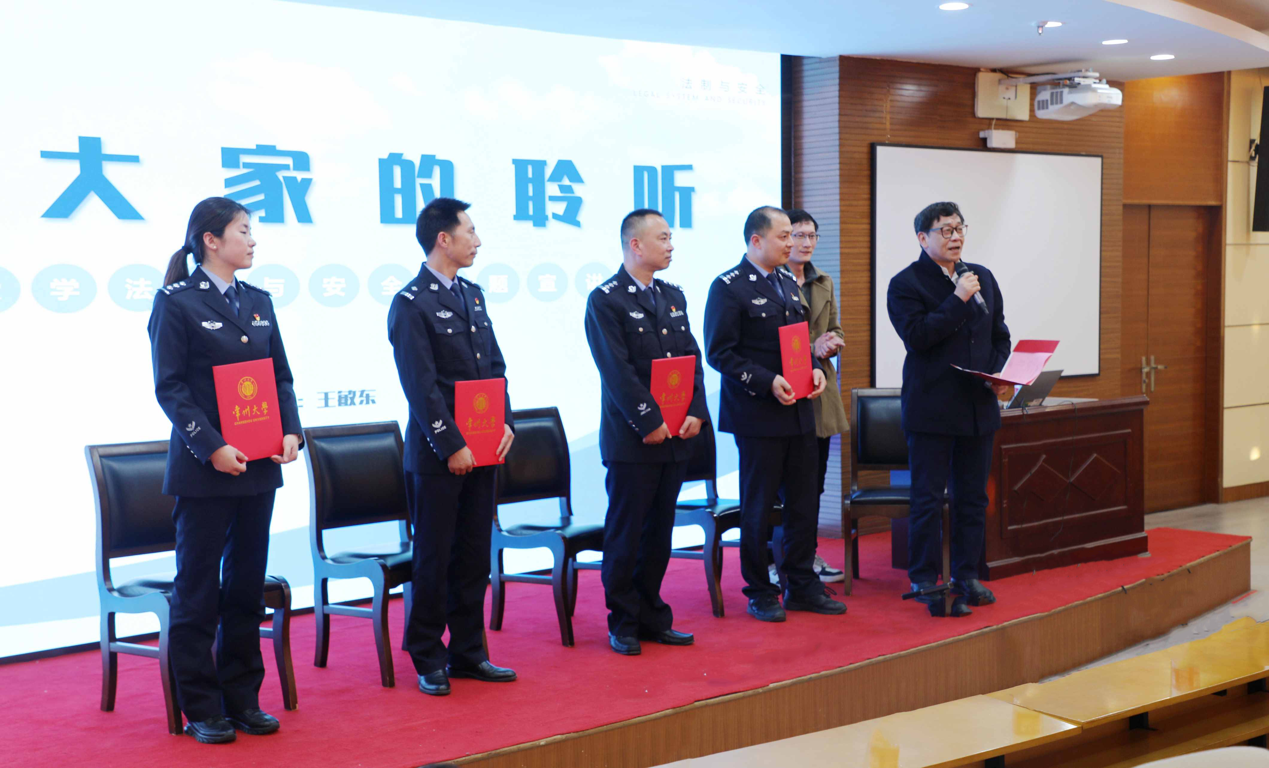 学院相关负责人为王敏东、孙振华、花鹏、薛琴颁发环境科学与工程学院法制与安全教育顾问聘书。