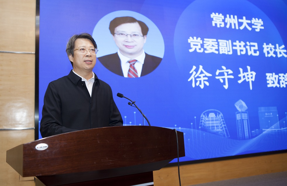 徐守坤介绍了学校基本情况、办学优势和特色。他指出,常州大学建校四十五年来,秉承“勇担责任,追求卓越”的学校精神,主动对接地方核心产业集群,着力推动产业学院建设,探索产教融合新路径,通过校地合作“同频共振”,打造产业协同发展“命运共同体”。目前学校共获批国家级现代产业学院 1个,省级现代产业学院4个,省级产教融合型示范专业4个。
