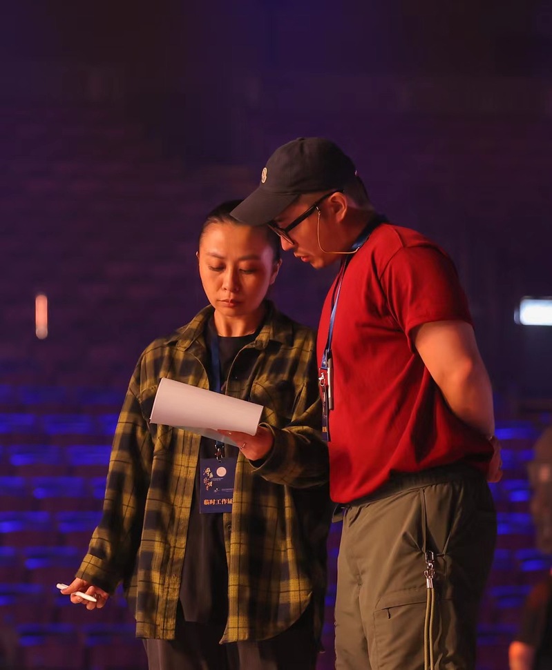 葛酉旖在彩排现场(右一)