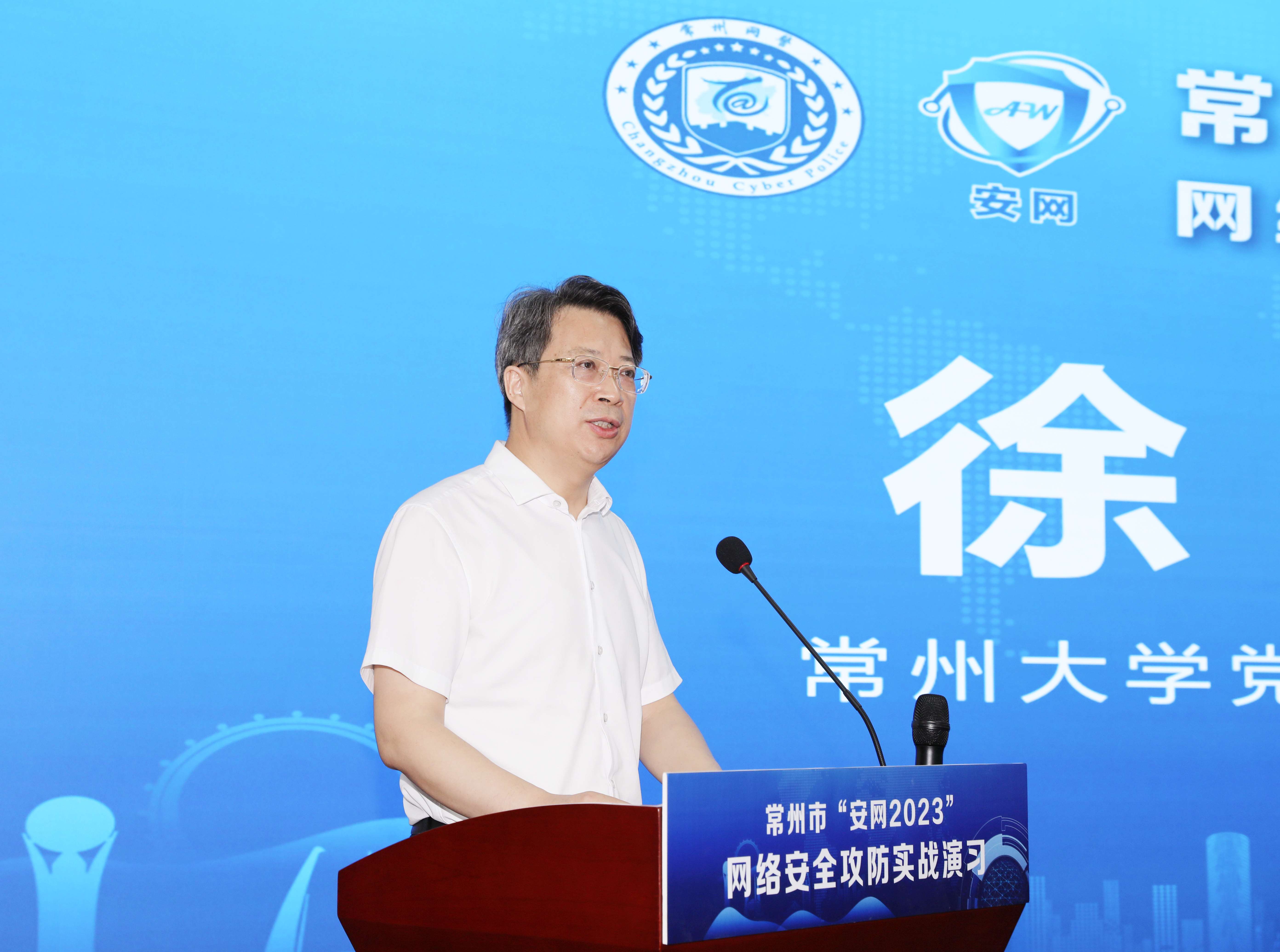 为学习贯彻习近平总书记关于网络安全和信息化工作的重要指示精神,整合全市网络安全资源,提前预判和发现网络安全风险与隐患,提升全社会网络安全防御能力,8月15日上午,由常州市公安局、市工信局、市卫健委、常州大学主办,常州市城建信息设施建设有限公司、江苏网擎信息技术有限公司、常州市计算机信息网络安全协会、常州工业信息安全联盟承办的常州“安网2023”网络安全攻防实战演习在常州大学西太湖校区立言楼多功能厅举行。常州大学党委副书记、校长徐守坤,常州市工信局党组成员、副局长沈新峰,常州市卫生健康委员会委委员、副主任姚澄,常州市公安局党委副书记、副局长张强出席会议。各活动承办方负责人就本次网络安全攻防实战演习分别作表态发言并提出具体的工作要求。