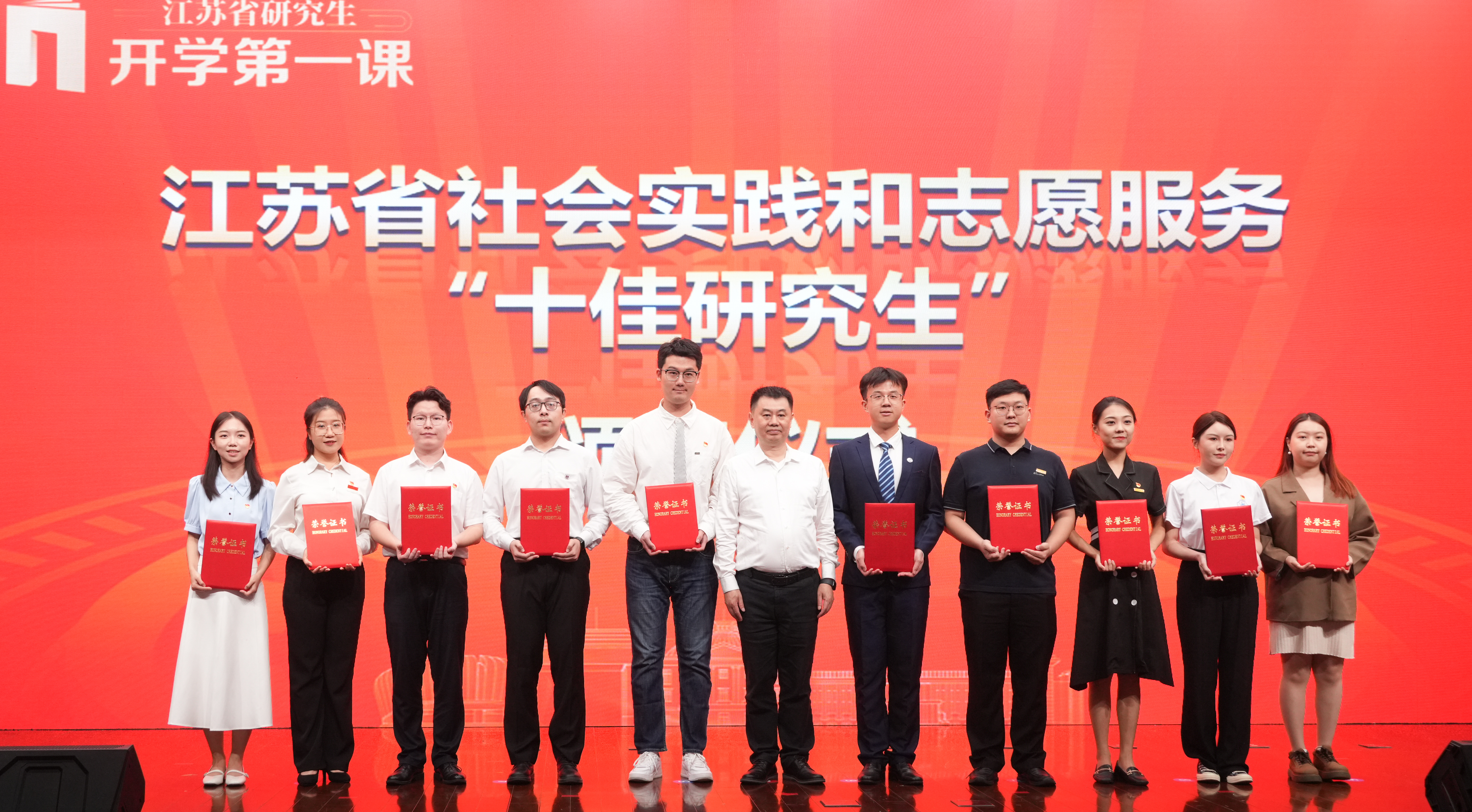 活动现场进行了江苏省社会实践和志愿服务“十佳研究生”“十佳研究生团队”颁奖仪式,我校史良法学院硕士研究生陈醉获江苏省社会实践和志愿服务“十佳研究生”,这是继2021年我校获首届江苏省社会实践和志愿服务“十佳研究生”提名奖后的又一重要荣誉。