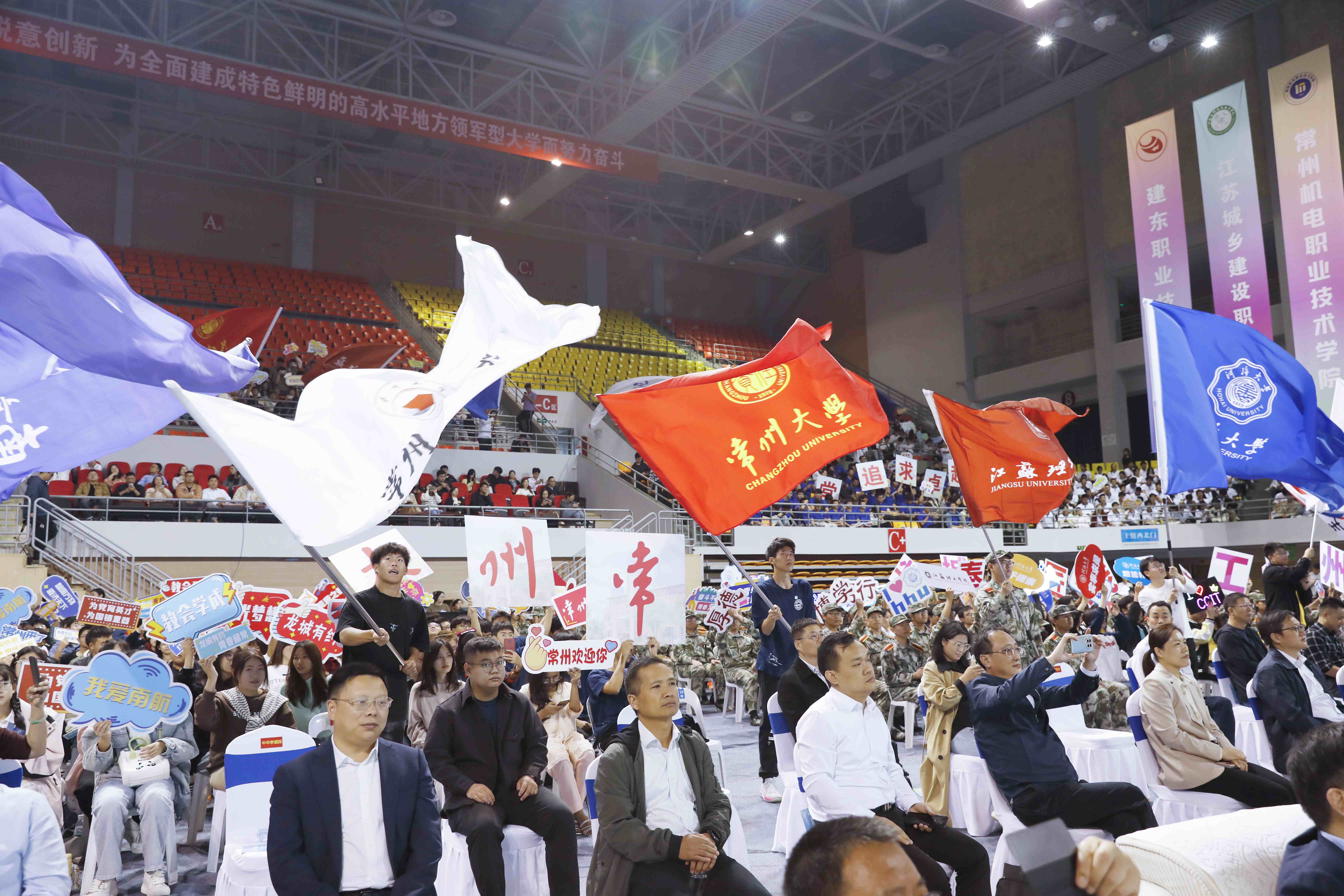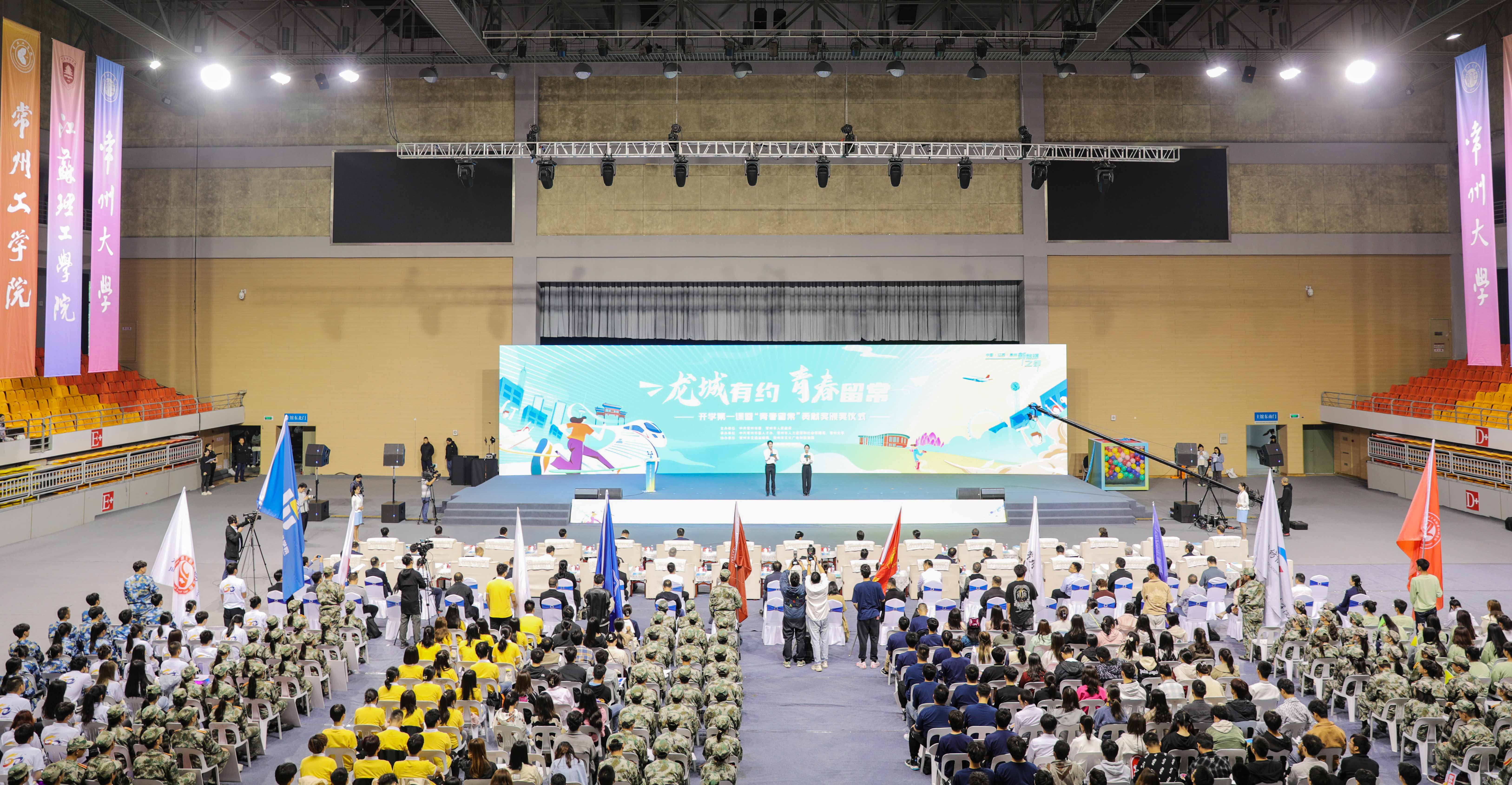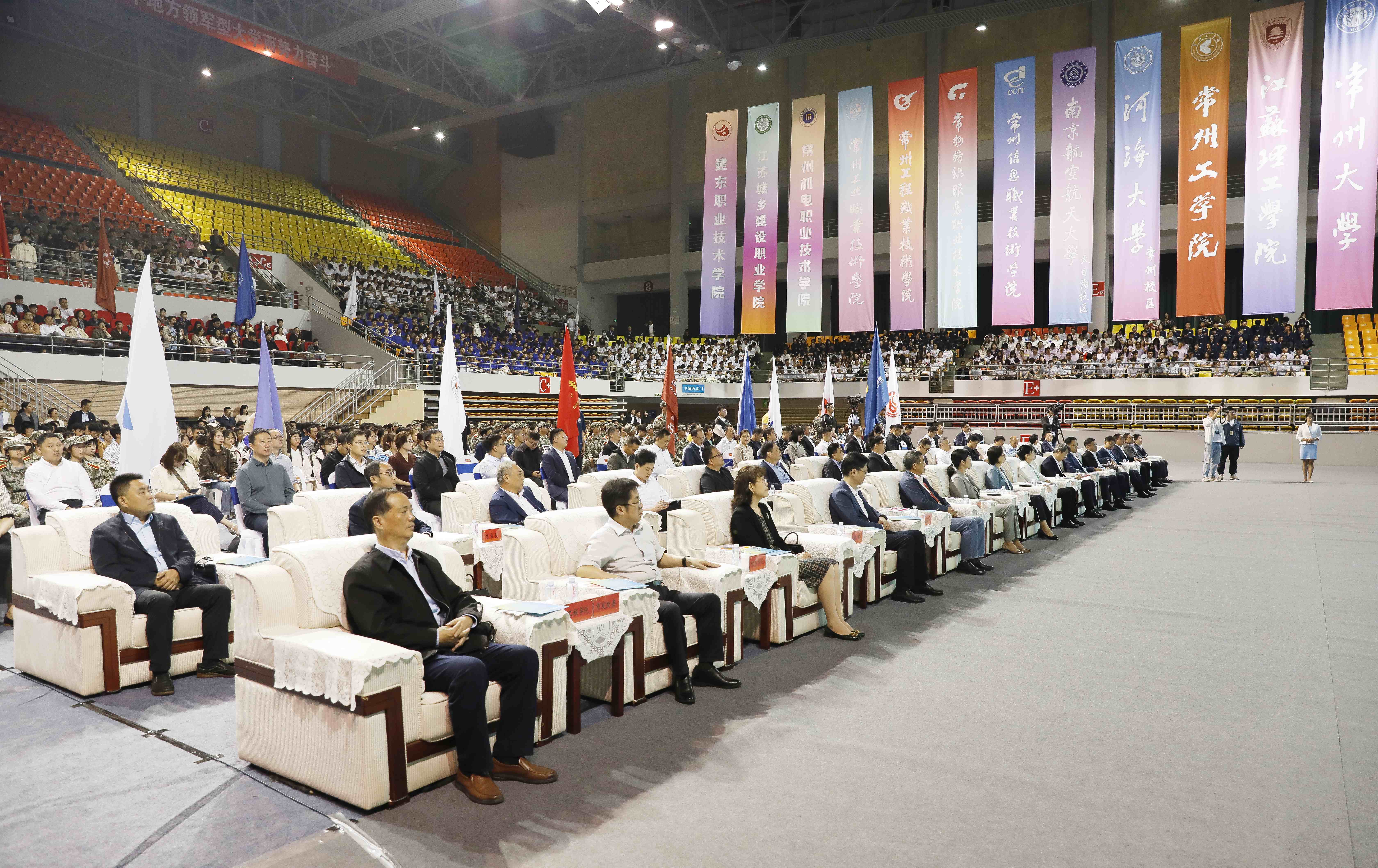 10月14日上午,“龙城有约 青春留常”在常高校开学季主题活动在我校科教城校区体育馆举行。常州市市长盛蕾,市委常委、组织部部长陈翔,市政协副主席、市教育局局长完利梅,市人民政府秘书长周承涛,常州大学党委书记徐守坤,常州大学党委常委、副校长周刚出席会议,在常高校主要领导、相关政府部门、有关院校、辖市区人才办和人社局负责同志、部分重点企业负责人以及新生代表参加会议。