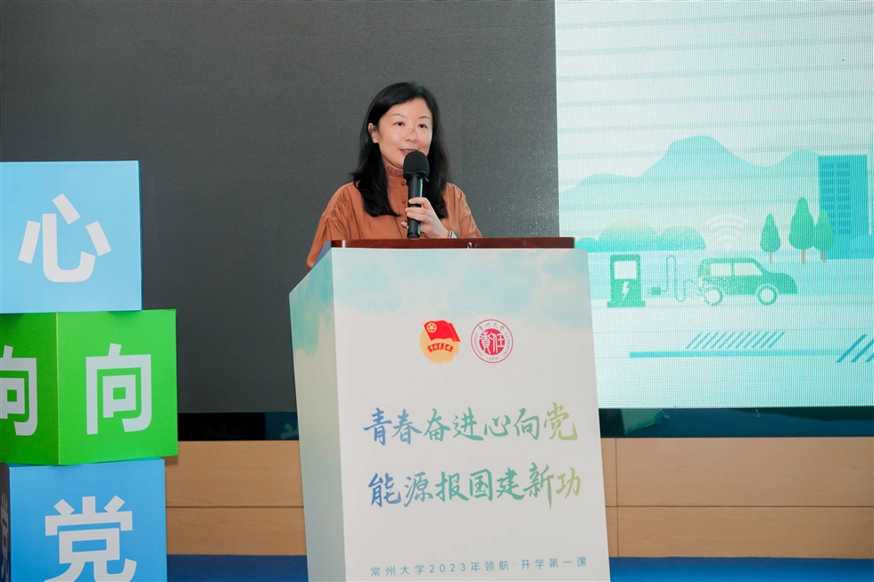 10月20日,“青春奋进心向党 能源报国建新功”常州大学2023年“领航·开学第一课”在天合光能股份有限公司(以下简称“天合光能”)举办。校党委副书记黄海燕,共青团常州市委书记陈海元,天合光能党委副书记、助理副总裁詹静,天合光能副总裁、人力资源负责人翟亚东,江苏省劳动模范、江苏省党代表、天合光能技术助理副总裁、光伏科学与技术全国重点实验室副主任陈奕峰出席活动,校团委全体成员、各学院团工作负责人、新生团支部书记、青马学员等200余名师生代表参加活动。