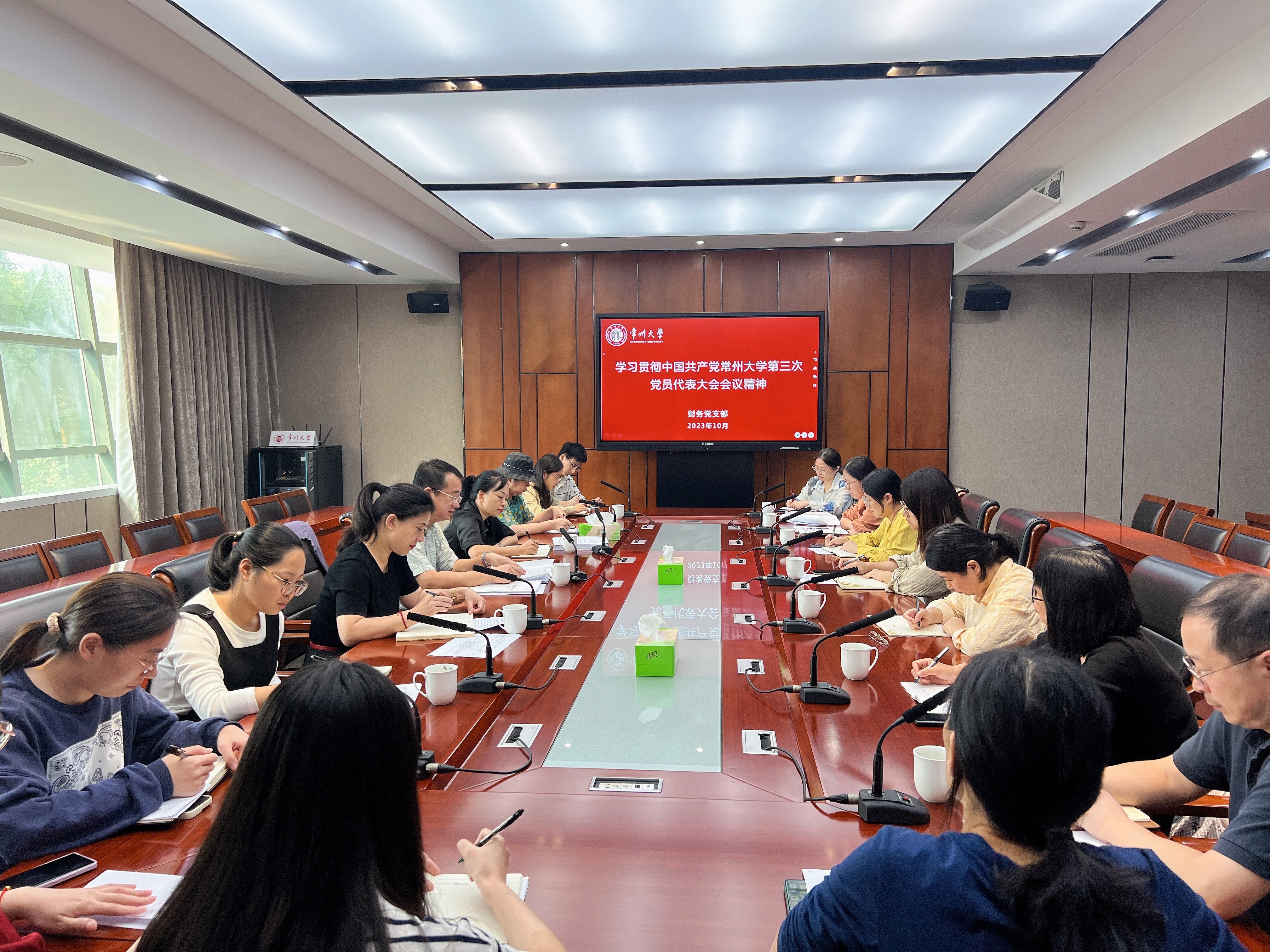 10月19日下午,财务党支部召开党员大会,传达学习中国共产党常州大学第三次党员代表大会会议精神。财务党支部书记周晓东主持会议,他带领全体党员共同学习了党委书记徐守坤所作题为《牢记嘱托走在前 感恩奋进做示范 奋力谱写特色鲜明的高水平地方领军型大学新篇章》的报告,并对报告中提出的“1349”发展战略——坚持“党建统领”、聚焦“三大制约”、实施“四大策略”、开展“九大行动”做了详细和深入的解读。他要求全体党员深入学习贯彻中国共产党常州大学第三次党员代表大会精神,深刻把握其精神要义,紧紧围绕学校未来五年事业发展规划和主要目标,谋划思考财务工作,不断强化财会监督职能,推动学校财务管理水平明显提升,全面推进开源节流提质增效,为奋力谱写特色鲜明的高水平地方领军型大学新篇章提供高水平高质量的财务服务保障。