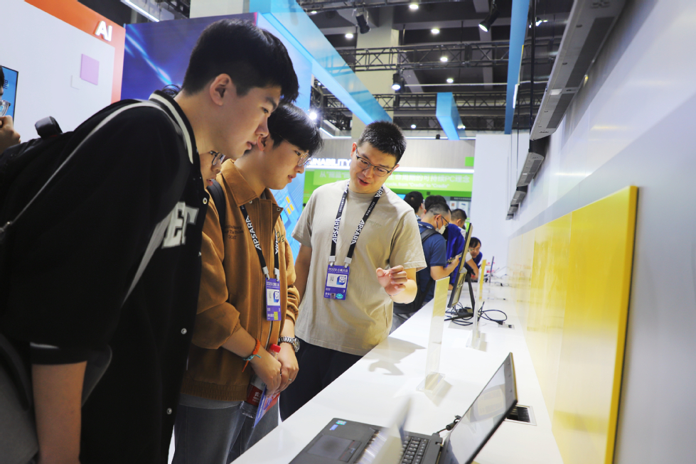 “人工智能+馆”里 AI大模型领域研究成果和先进行业模型应用、“算力馆”一百余项重磅产品技术展项与60余个动手实验互动产品、“产业创新馆”数字技术提升生活品质的消费电子、虚拟现实、智能出行、机器人等等……师生们一起聆听、交流、沉浸式体验计算的魅力。