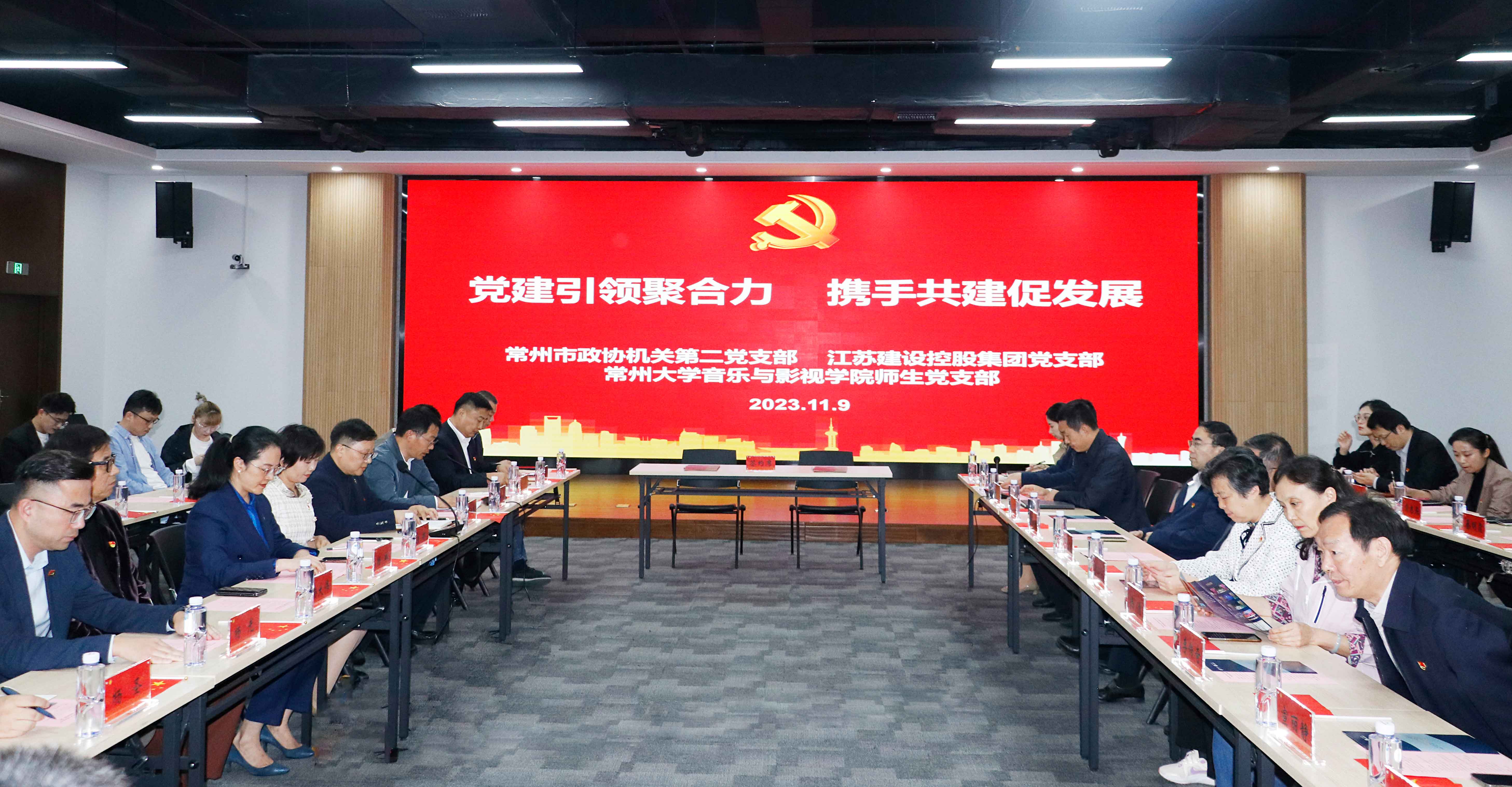 为深入学习贯彻习近平新时代中国特色社会主义思想,全面贯彻落实党的二十大精神,11月9日下午,音乐与影视学院师生党支部与市政协机关第二党支部、江苏建设控股集团党支部围绕“党建引领聚合力,携手共建促发展”主题,在西太湖校区立言楼458会议室开展了党支部结对共建活动。市政协史政达副主席一行20人,江苏建设控股集团有限公司杨光董事长一行15人,党委常委、副校长杨琳出席共建活动,音乐与影视学院班子成员及师生党支部全体党员参加活动。