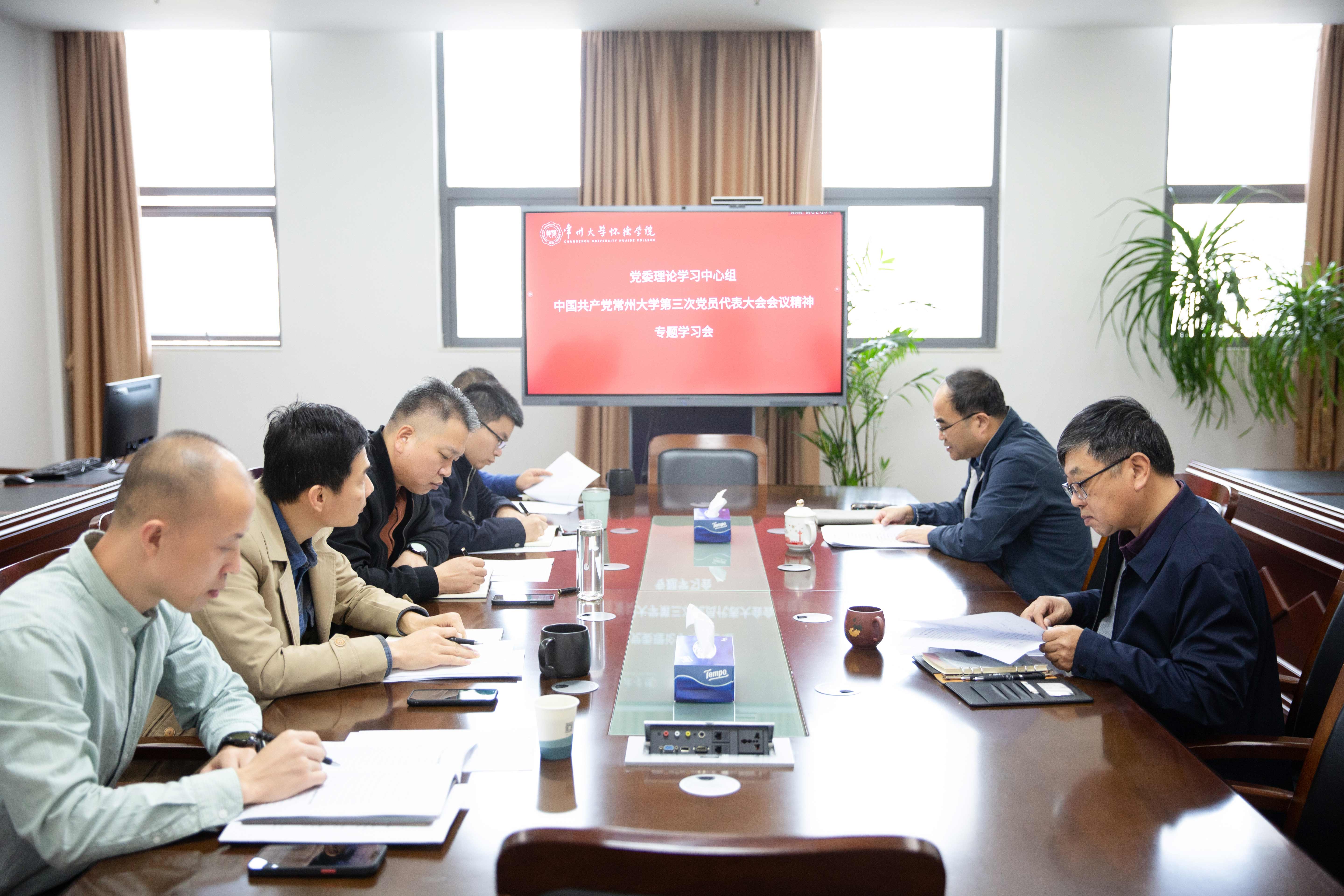 11月8日上午,怀德学院党委理论学习中心组召开专题学习会议,深入学习中国共产党常州大学第三次代表大会会议精神。院党委书记李伟明传达了中共常州大学第三次党员代表大会精神,带领与会同志学习党委书记徐守坤所作的“牢记嘱托走在前 感恩奋进做示范 奋力谱写特色鲜明的高水平地方领军型大学新篇章”主题报告。他表示,学校第三次党代会深刻总结了过去五年的发展成就,站在全新的历史节点上,对建设“特色鲜明的高水平地方领军型大学”目标指明了未来的发展方向。他指出,学院上下要认真学习宣传校第三次党代会精神,真正做到将学校党代会精神与学院事业发展高度结合,看到不足与挑战,提升干事创业的主动性,紧紧围绕学校发展实际,深入基层调研,持续推进三大质量提升工程走深走实,主动适应发展环境变化,全力推动学院高质量发展。与会人员深入研讨了常州大学在第三次党代会上提出的各项任务和举措,并结合学院实际,就如何更好地推动学院事业发展、服务全校大局等议题进行了热烈讨论。