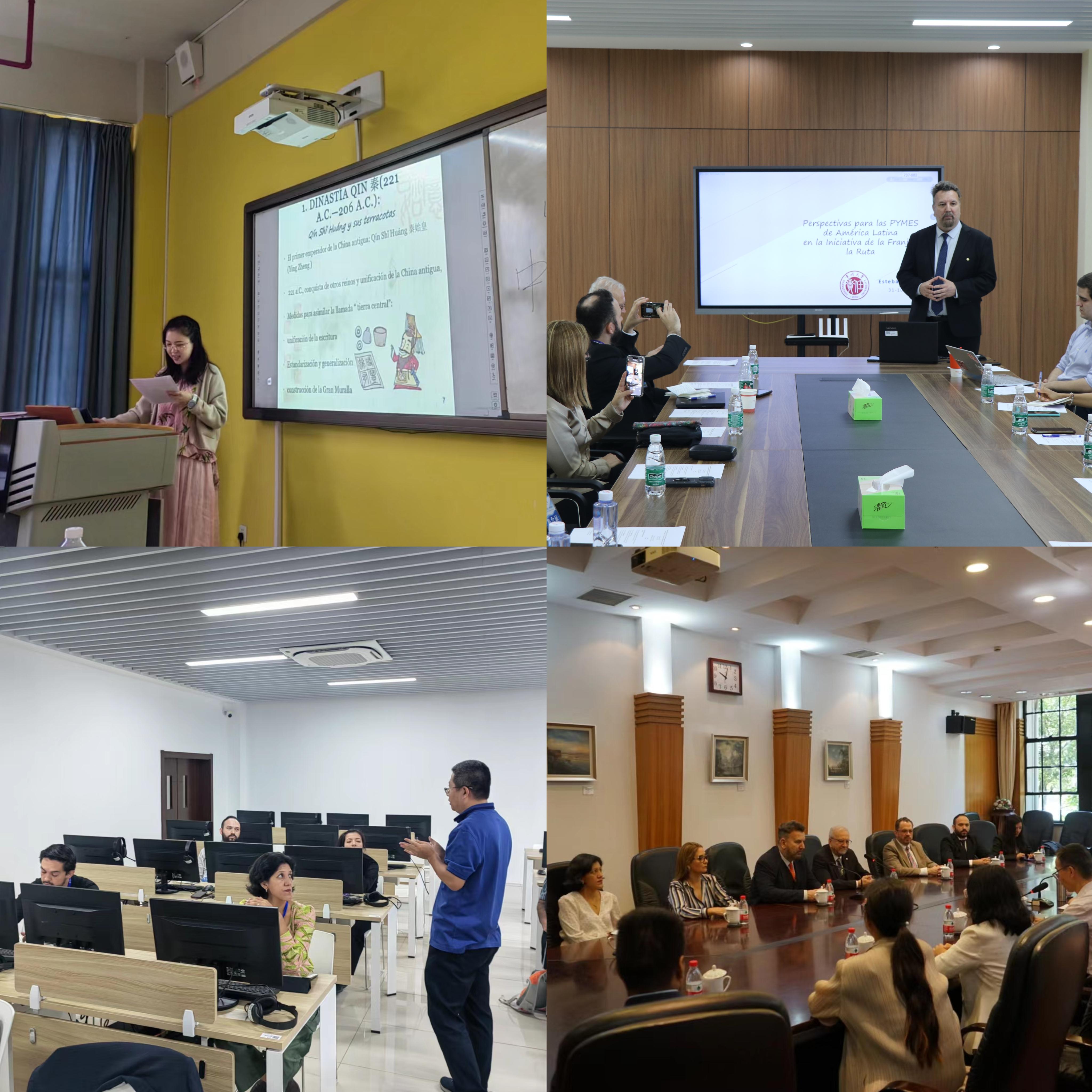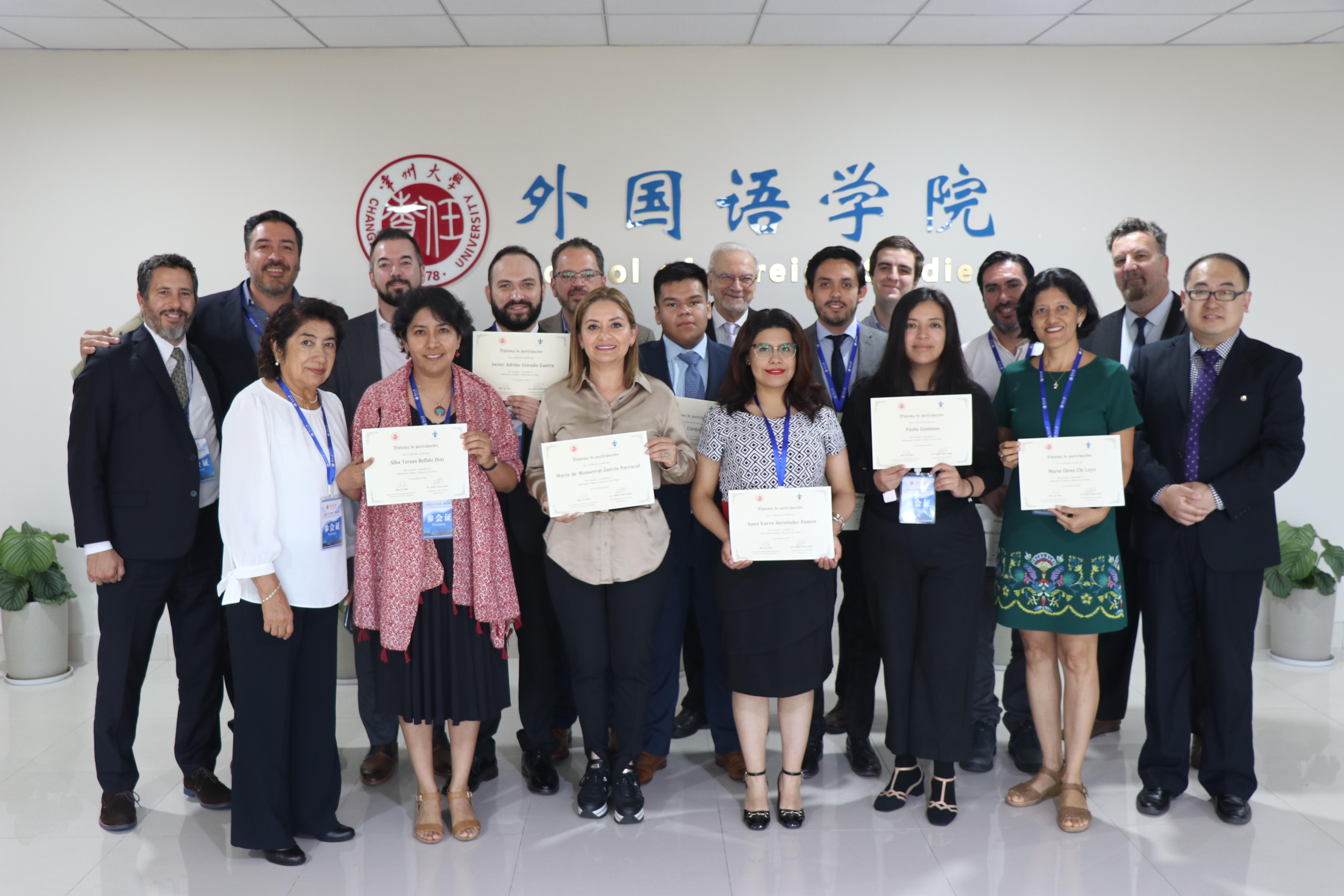 培训研讨期间,学员们同我校教师就中国文化、中国经济体系、“一带一路”倡议、商务礼仪、中国和拉美合作等方面进行了交流和讨论。学员参观了蜂巢能源、万邦数字能源、中创新航、天合光能、比亚迪等知名企业,与盈科(常州)律师事务所、恒力液压、江苏卓越智能、上海瑞轩食品等进行了深入交流,并与墨西哥驻上海总领事馆、常州市人民政府外事办公室、上海市社会科学院等进行了一系列洽谈。在培训闭幕式上,阿根廷布宜诺斯艾利斯大学比亚格兰教授、达明教授,墨西哥维拉克鲁斯大学索特雷教授及我校斯蒂文博士和外教霍凯为学员们举办了“一带一路:拉美的视角”圆桌论坛。外国语学院、拉丁美洲研究中心和中国-维拉克鲁斯研究中心为学员颁发了结业证书。
