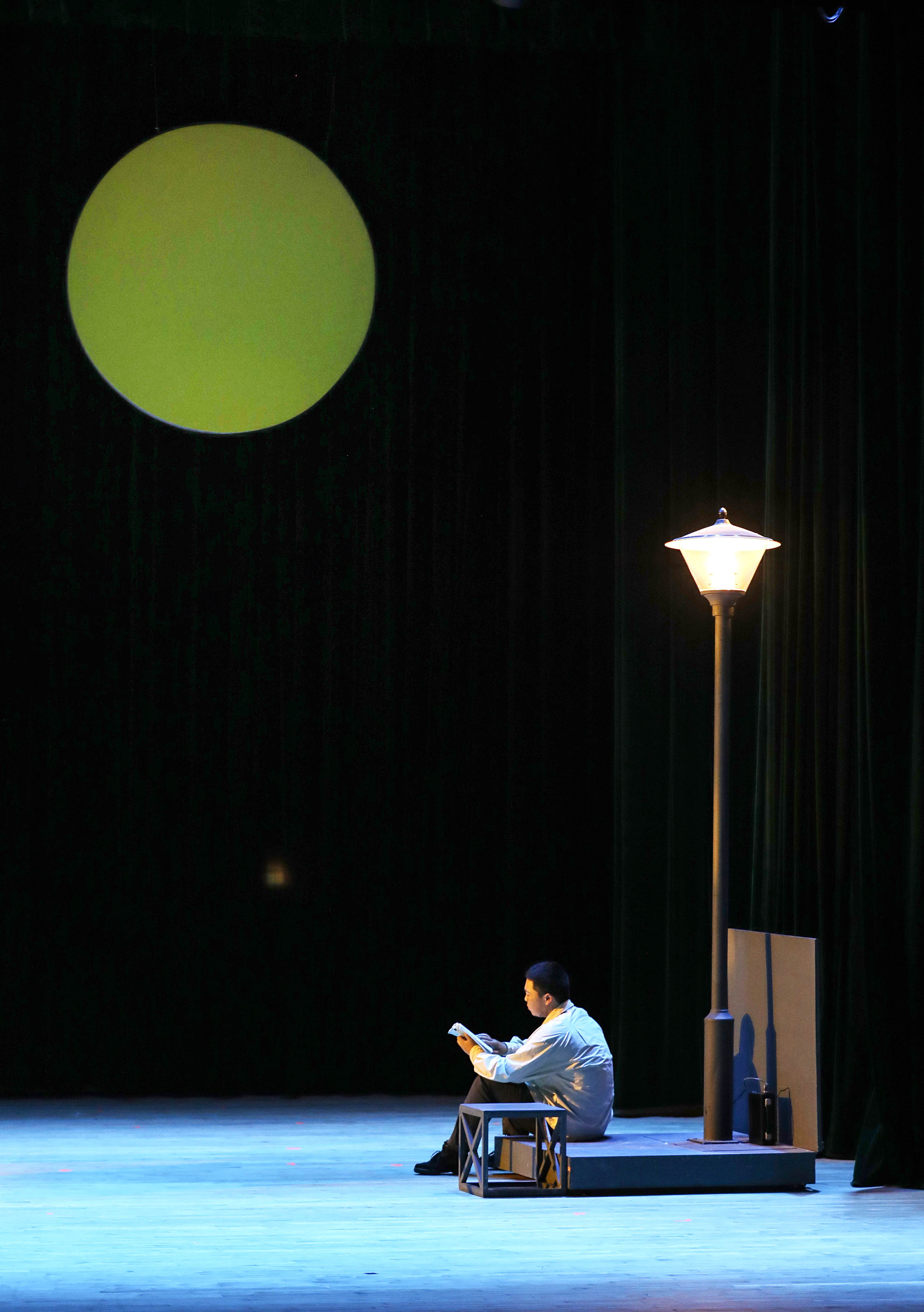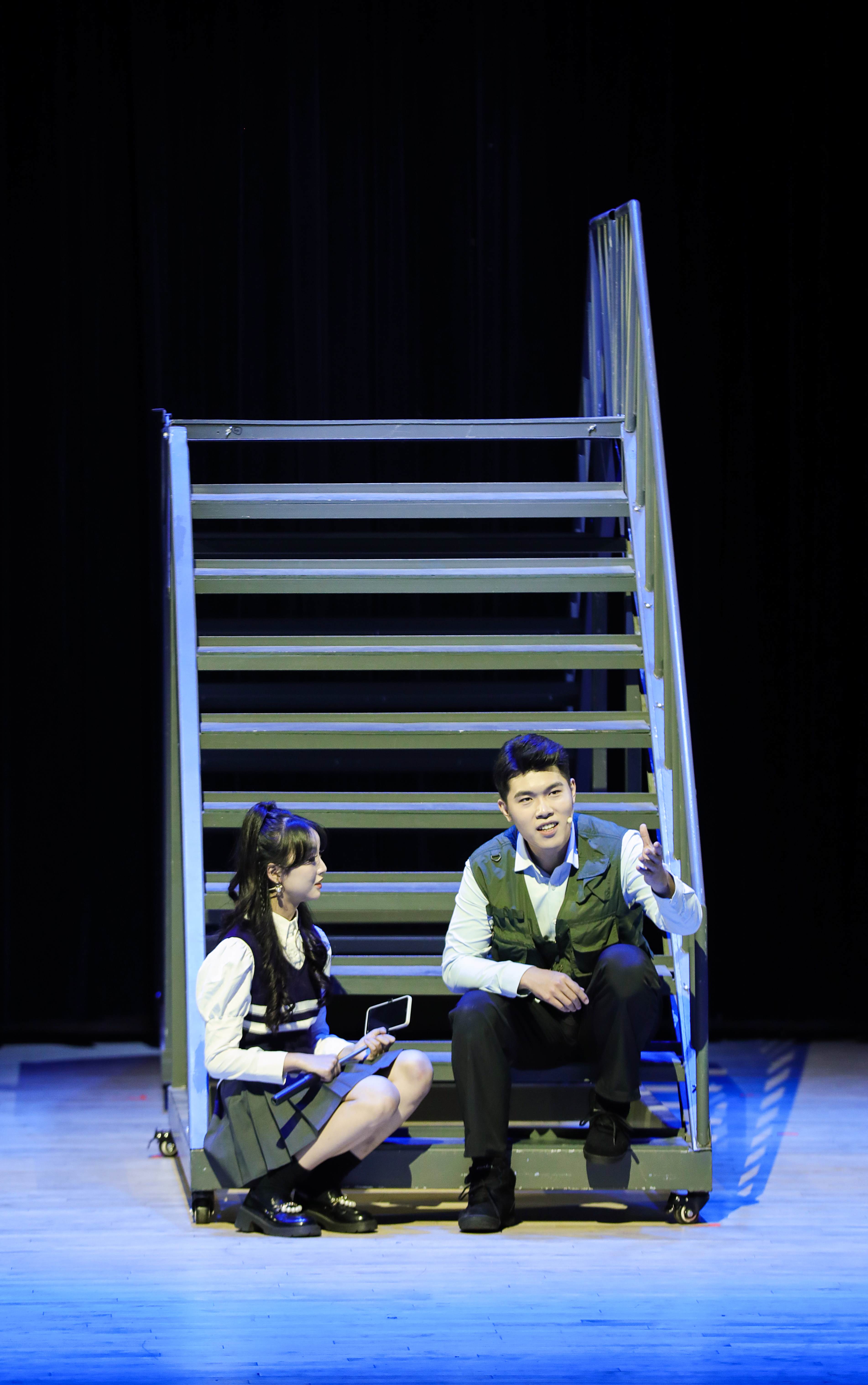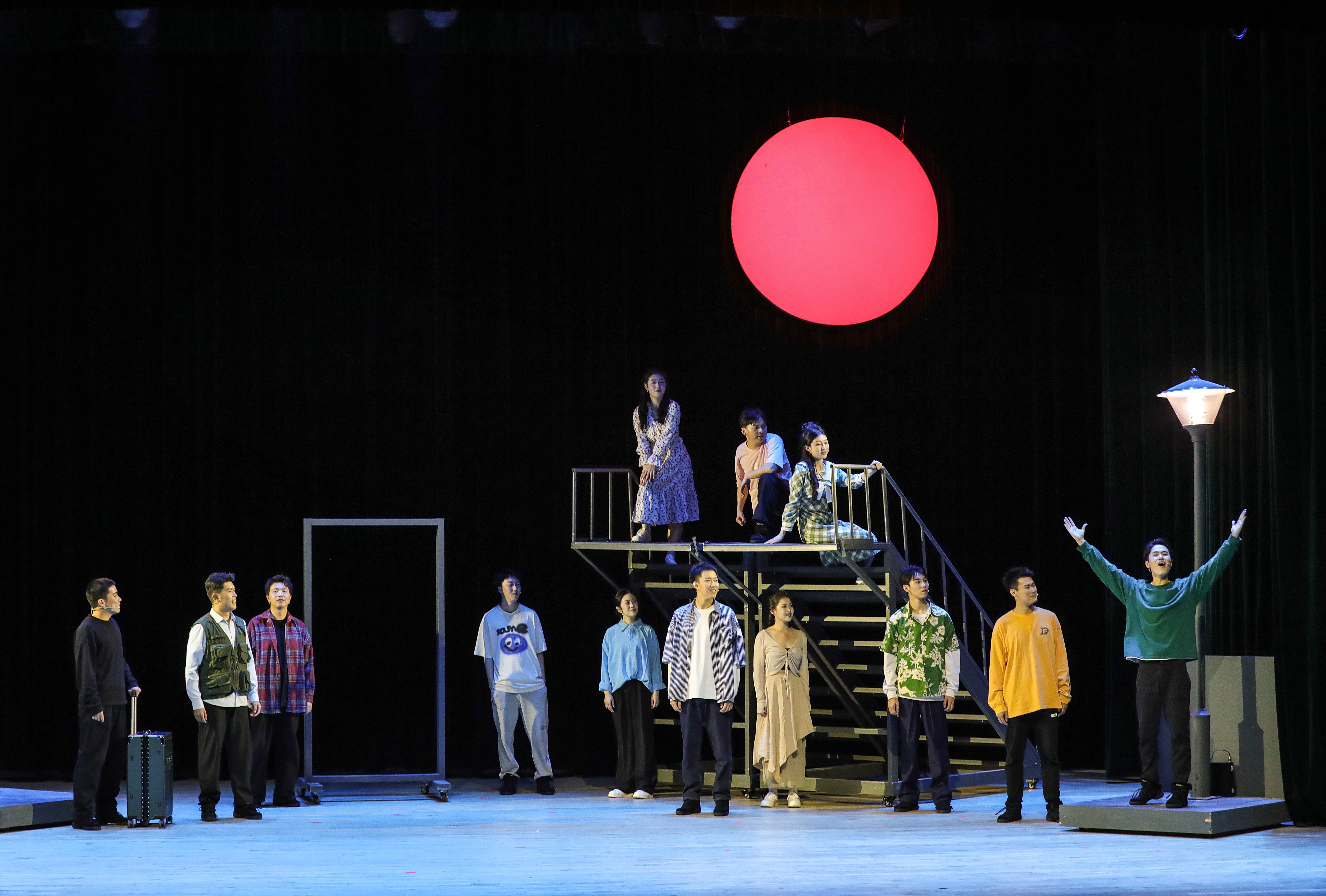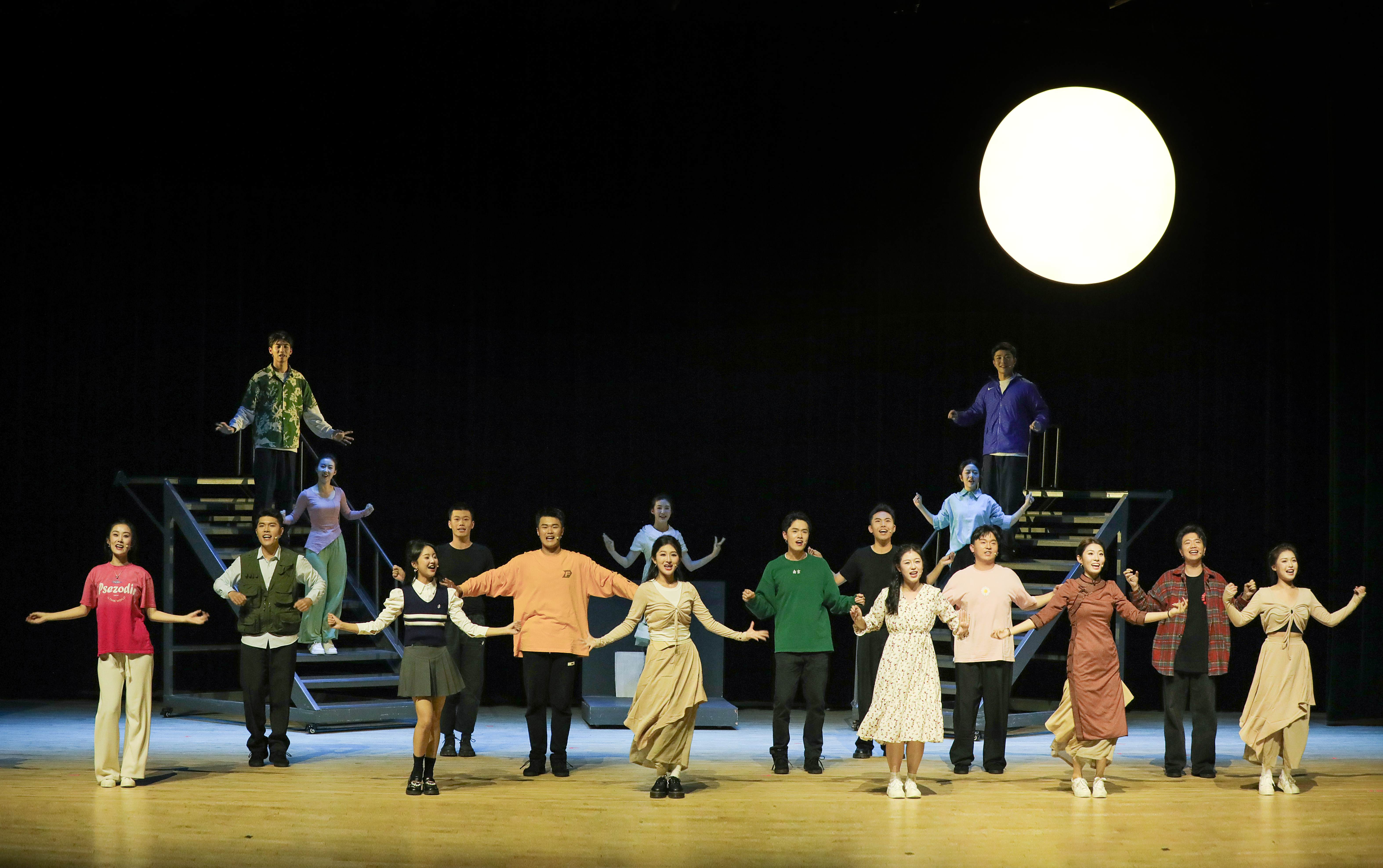 原创诗话剧《月亮与烟火》由国家一级演员、音乐与影视学院表演专业负责人蔡伟教授担任艺术总监,表演系主任童劲杰、青年教师陈思含执导,著名诗人欧震编剧。该剧从表演系学生的视角出发,以戏剧排练为剧情主线,通过戏中戏的方式,呈现出当代大学生丰富多彩的校园生活,表达了新时代青年对历史的追忆和对国家的热忱。剧中学生扮演的瞿秋白、刘半农等人物形象,激励着当代青年铭记历史、砥砺前行;运河母亲则展现了常州地域文化,寄托着对乡土的眷恋和对祖国的深情;而李白、嫦娥、云、鸟等角色则是浪漫主义的化身,以富有诗意的台词引发观众的无限遐想,为全剧增添一抹亮丽的色彩。舞台上,表演专业学生展现出成熟的表演技巧与昂扬向上的青春活力,精彩的演出获得在场观众一致好评。