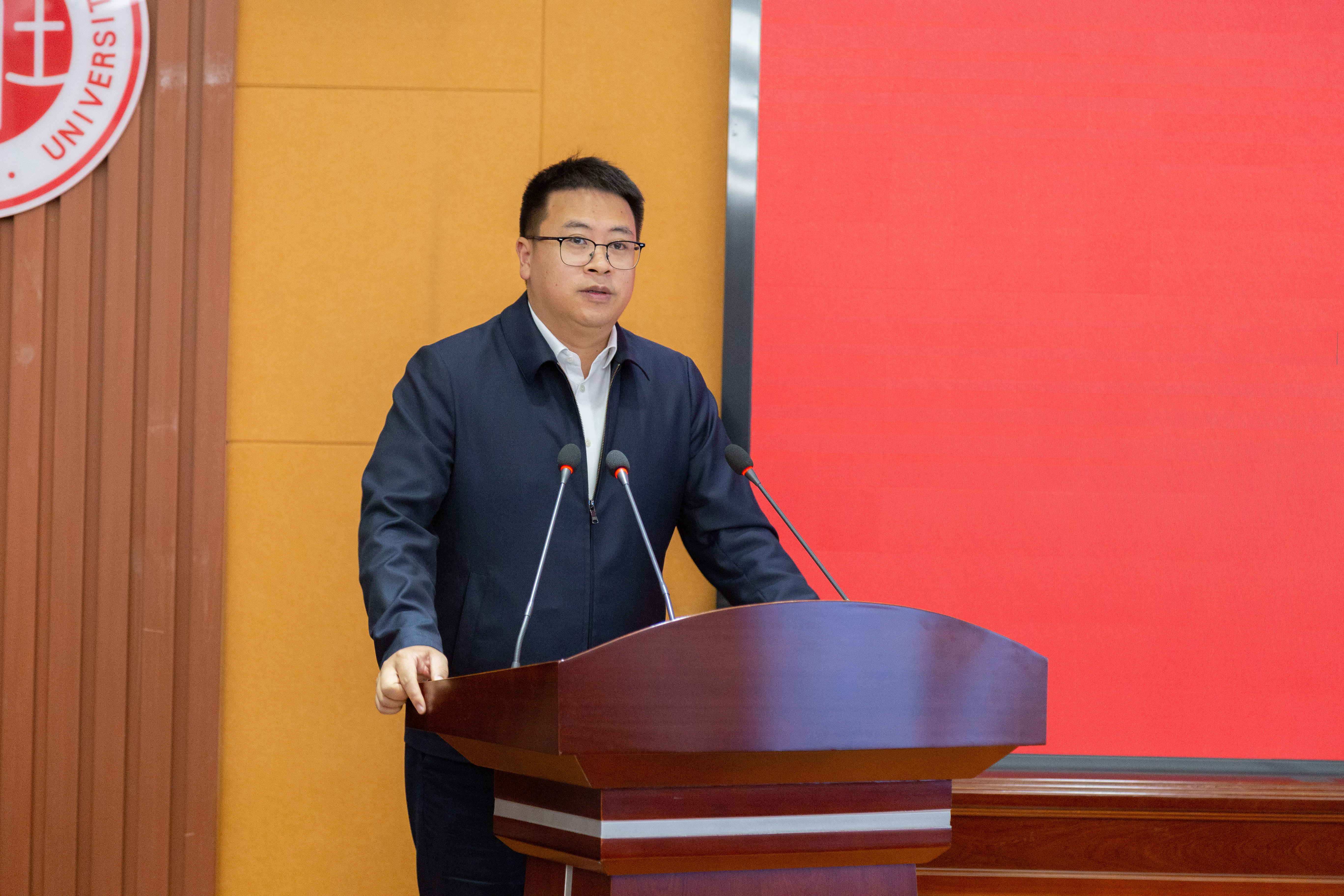 11月14日,“守正创新 科创报国”常州大学第二届研究生学术科技节开幕式暨科学道德与学风建设月启动仪式在科教城校区东区乐行楼243学术报告厅举行。党委常委、副校长李亚飞出席开幕式并致辞。党委宣传部、科技处、产学研合作处、人文社科处、团委、创新创业学院、党委研究工作部、研究生院等相关部门负责人,各培养学院院长、副院长、研究生辅导员及研究生代表140余人参加活动。党委研究生工作部负责人主持开幕式。