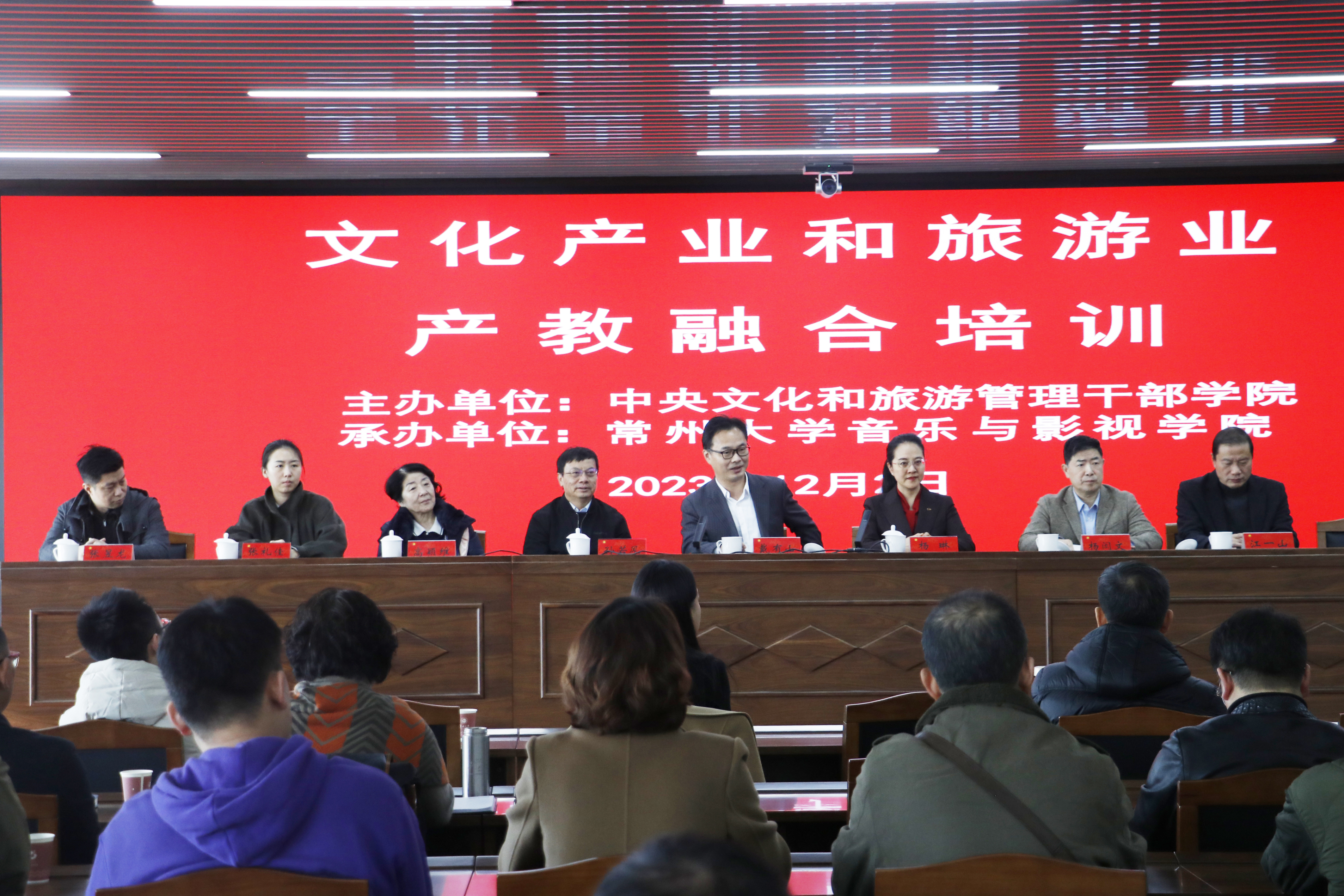 12月2日,由中央文化和旅游管理干部学院主办,常州大学音乐与影视学院承办的2020年文化产业和旅游业产教融合培训班在我校举行。常州大学党委常委、副校长杨琳,文旅部旅游标准委员会主任、原文旅部科教司司长孙若风,中央文化和旅游管理干部学院副研究员戴有山,原北京工艺美术集团董事长、全国劳模、“三八红旗手”高颖维,北京文化艺术资源研究院副院长杨闳文,常州大学创新创业学院、音乐与影视学院相关负责人及来自全国各地的学员参与培训。