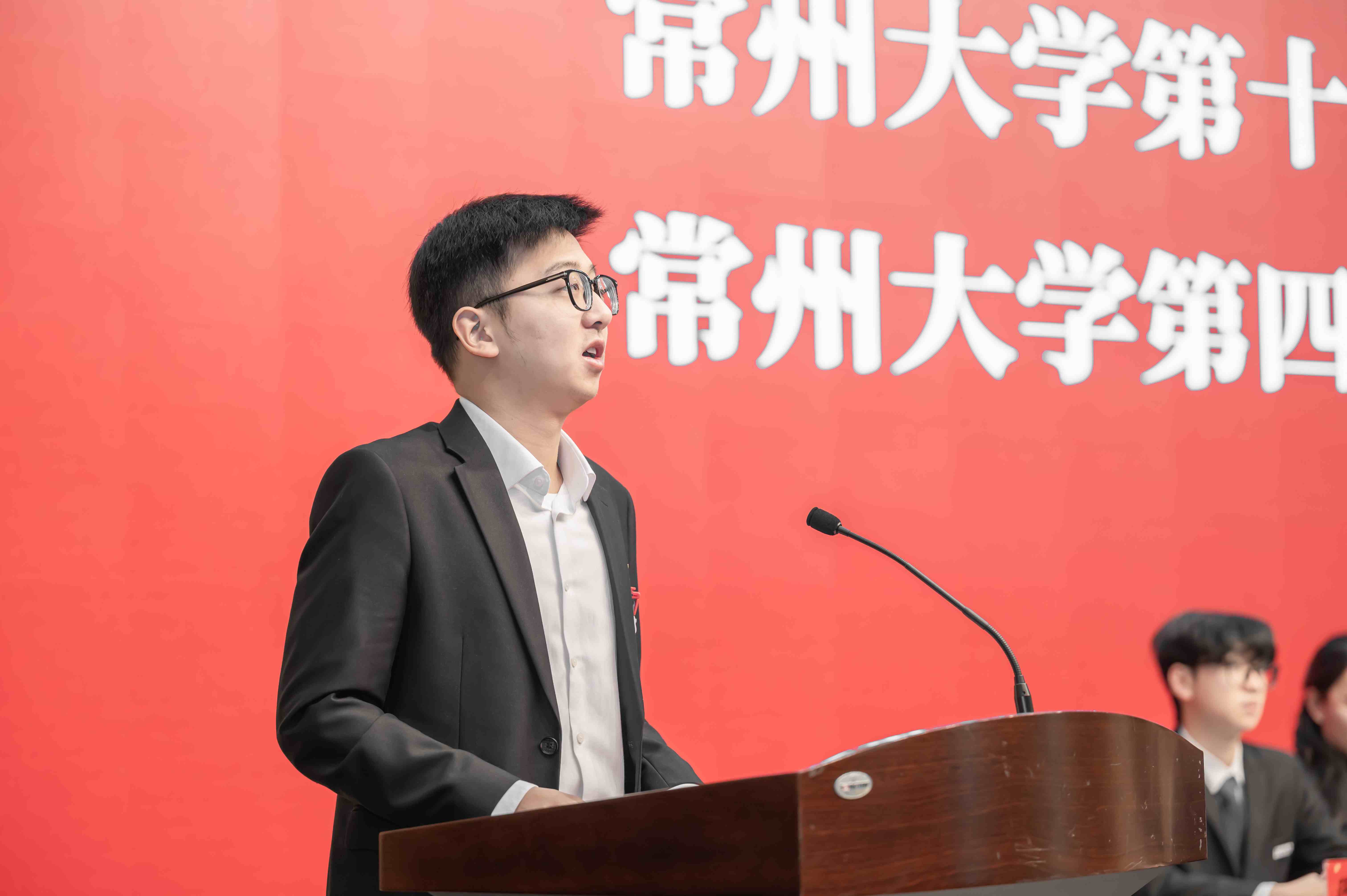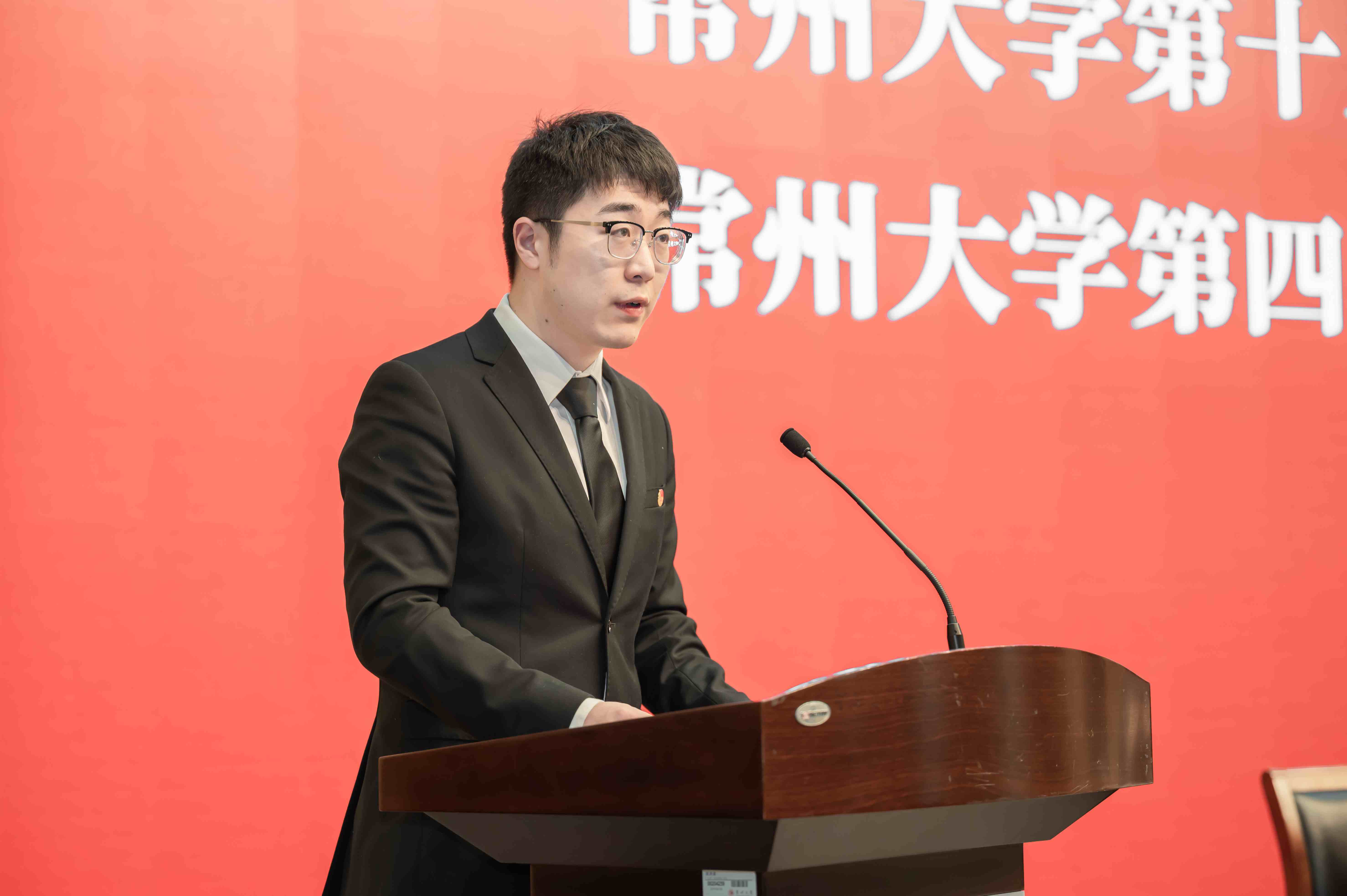 施展代表兄弟高校致辞。他表示,长久以来,常州大学学生会和河海大学学生会携手并进、精诚团结、共同发展,在江苏高校学生会组织大家庭中建立了深厚而持久的友谊。今后,河海大学学生会将继续与常州大学学生会加强交流合作,更好地为广大同学服务,更好地推进学校发展,共同奏响江苏高校学生会建功高质量发展的青春乐章。
