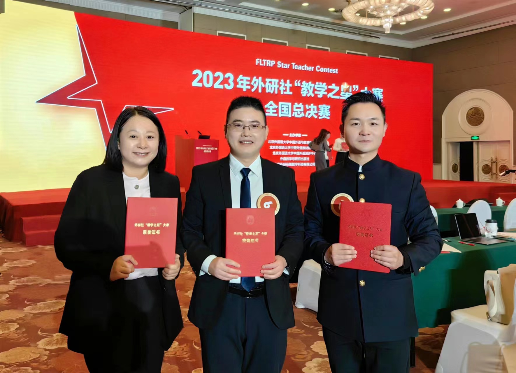 12月6日,2023年外研社“教学之星”大赛全国总决赛在北京举办。我校外国语学院英语系冯健高、却俊、杨逸教师团队在接连获得江苏省决赛特等奖、全国复赛特等奖、全国半决赛特等奖之后,代表江苏省参加全国总决赛,与来自清华大学、浙江大学、南京大学、西安交通大学、哈尔滨工业大学等多所高校的19支教师团队同场竞技,一举夺得全国总决赛一等奖,彰显了我校教师的优秀风采。