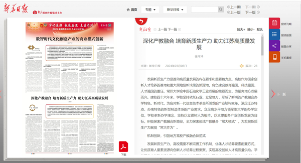 3月8日,正值全国两会召开之际,《新华日报》“牢记嘱托 感恩奋进 走在前列 2024全国两会特刊”专题发表我校党委书记徐守坤教授的署名文章《深化产教融合 培育新质生产力 助力江苏高质量发展》。文章从“机制创新,引领地方高校产教融合新范式”“全员融入,谋定地方高校产教融合新方案”“科技自强,构建地方高校产教融合新路径”“勇担责任,释放地方高校产教融合新动能”等方面介绍了我校产教融合工作的创新理念和实践。全文如下: