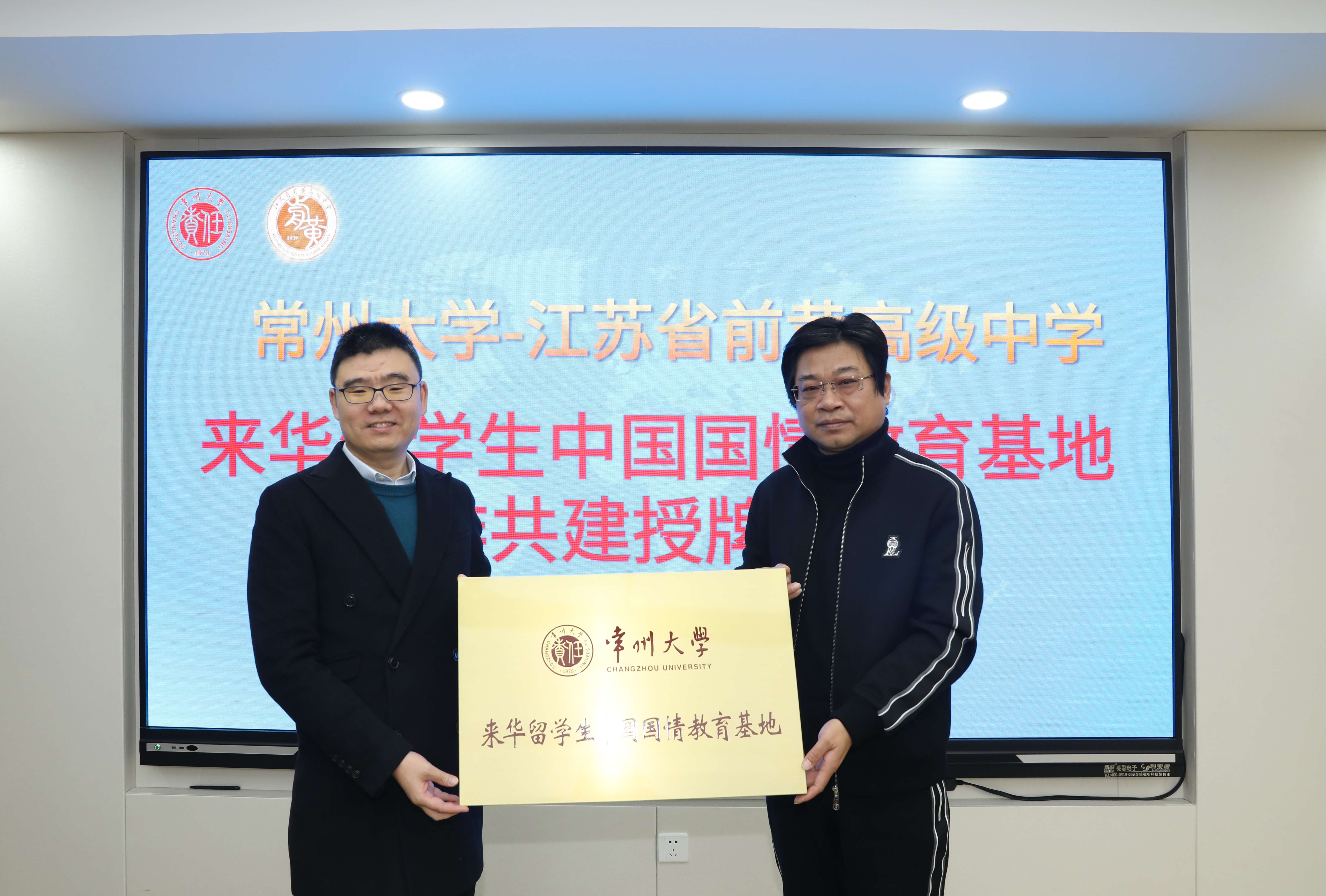 3月12日上午,我校与江苏省前黄高级中学(以下简称“省前中”)举行共建“常州大学来华留学生中国国情教育基地”授牌仪式。省前中党委书记、校长黄惠涛,副校长袁如标,常州大学副校长王建浦,国际交流处、海外教育学院相关负责人,石油化工学院相关负责人及7名外国留学生代表参加活动。