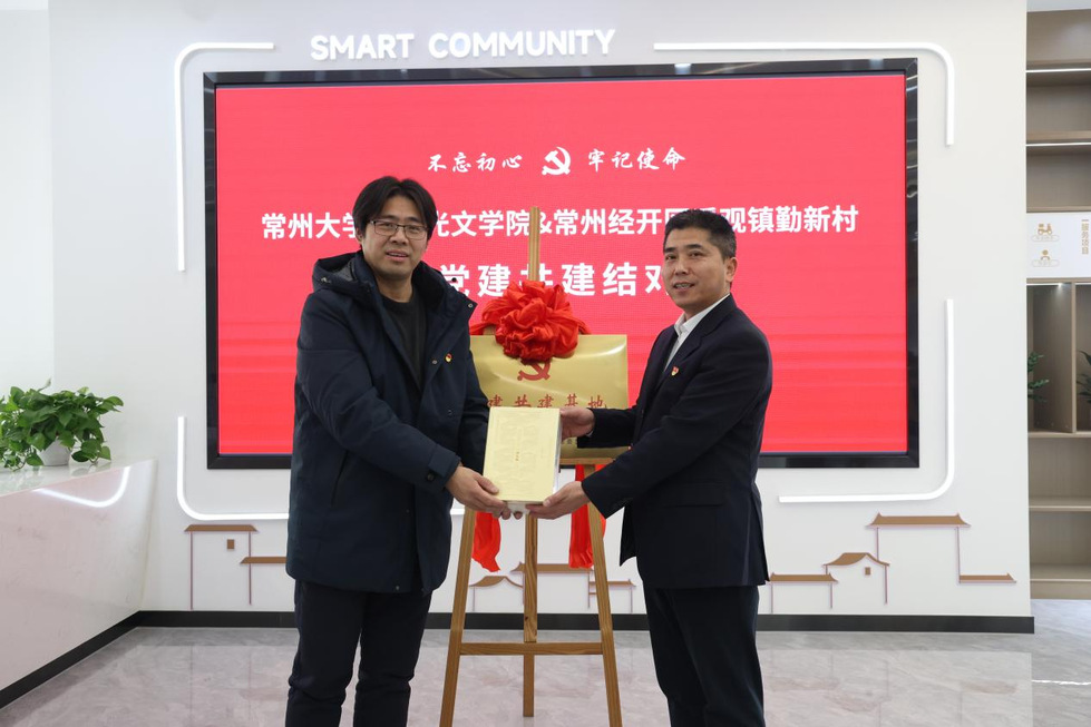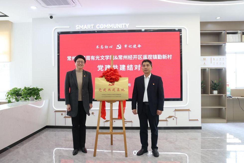 为深入贯彻落实党的二十大精神,共同推动新时代文明实践,近日,常州大学周有光文学院与常州市经开区遥观镇勤新村举行党建共建活动。周有光文学院相关负责人、内设机构负责人、教师代表,勤新村党总支书记周建明及总支班子成员参加活动。