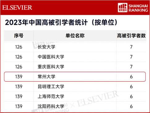 常州大学共计6位教授上榜,较上一年新增3位,入选学者数量创历年新高!上榜人数在中国内地高校位列第139名,省内高校第18名。其中,王建浦教授、包伯成教授、孔德军教授、张宗超教授分别在材料科学与工程、电子科学与技术、机械工程和化学工程与技术四个学科入选“中国高被引学者榜单”,史一安教授和石枫教授在化学学科入选“中国高被引学者榜单”。