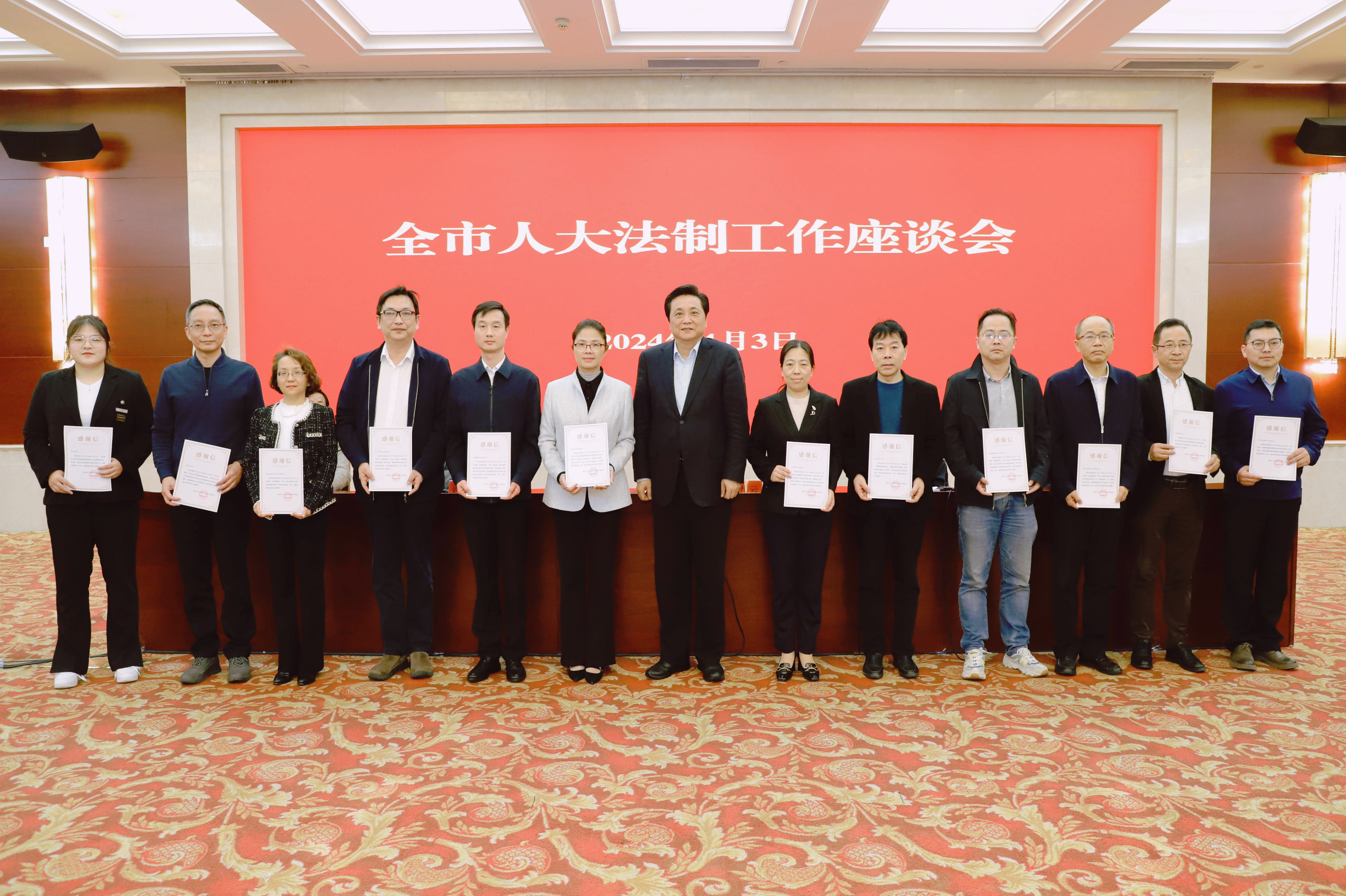 市人大常委会副主任、党组副书记韩九云为徐瑶(左一)等颁发立法感谢信