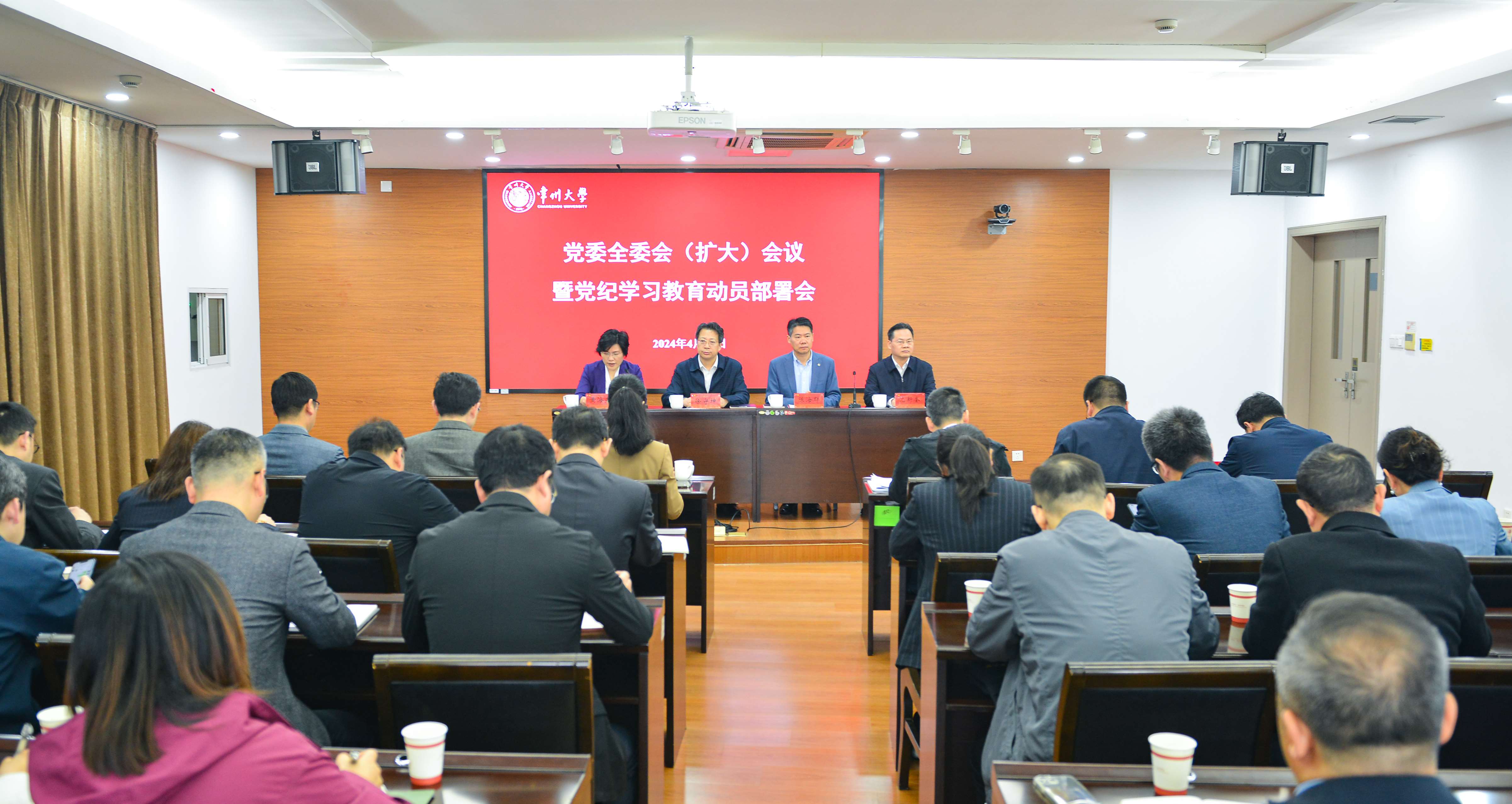 4月15日上午,学校召开党委全委会(扩大)会议部署党纪学习教育。党委书记徐守坤出席会议并讲话,党委副书记、校长陈海群作工作部署,纪委书记、派驻监察专员沈新奎传达学习习近平总书记关于党纪学习教育的重要讲话重要指示精神、中央及省委党的建设工作领导小组会议要求,全体校领导出席会议,两委委员、二级党组织书记参加会议。党委副书记黄海燕主持会议。