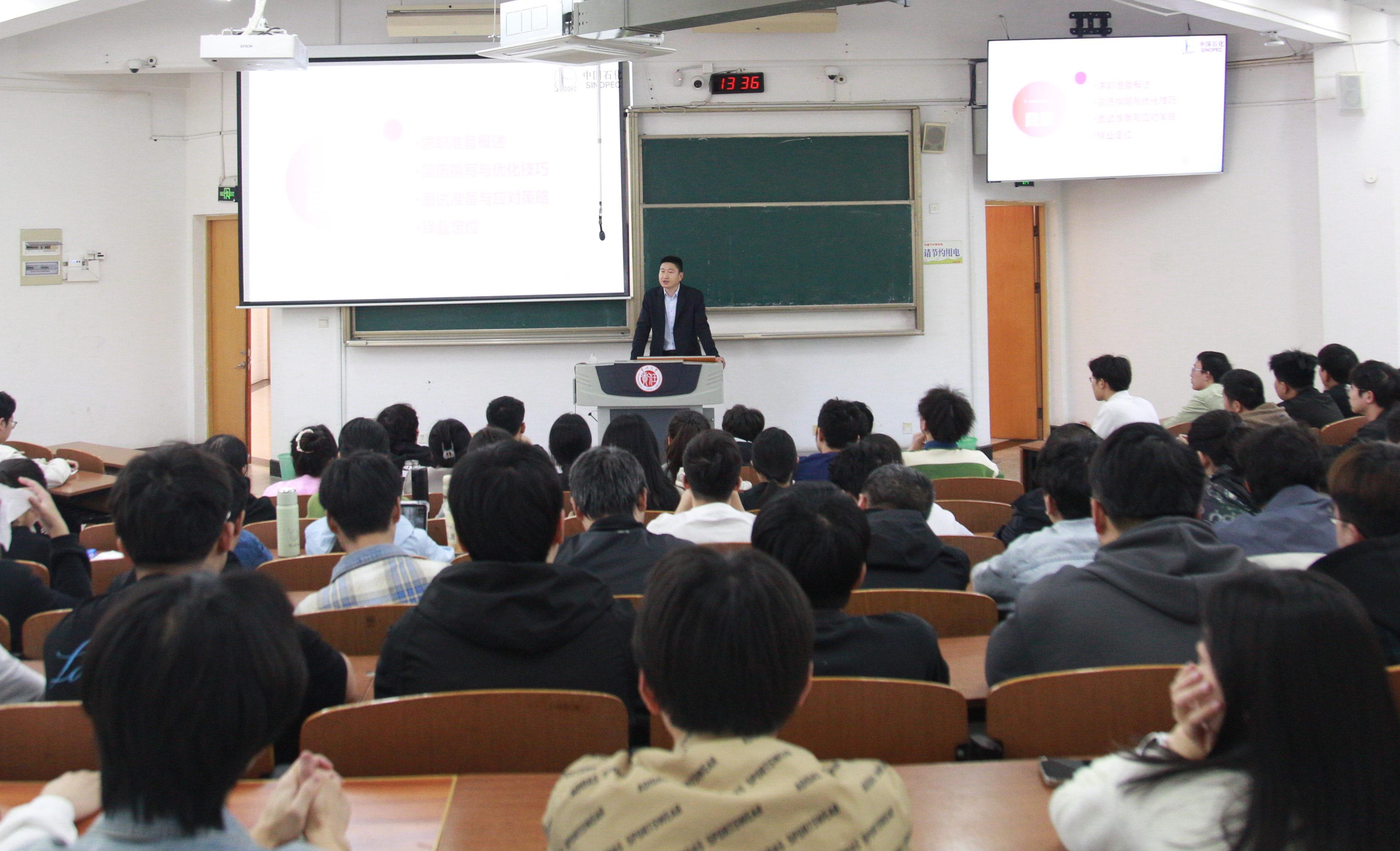 交流会后,周刚为曹其林颁发“大学生职业生涯发展指导老师”聘书,曹其林为机械学院学生开展“求职准备及择业定位”生涯指导讲座。(通讯员/阴祥 审核/蒋琳 编辑/庄媛)
