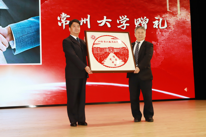 医学与健康工程学院负责人向山观中学赠送了山观中学校园艺术刻纸。