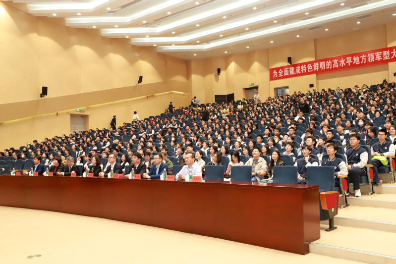 4月20日上午,江阴市山观高级中学(以下简称“山观中学”)在我校西太湖校区立艺楼礼堂,举行主题为“十八而志正青春 踔厉奋发向未来”的成人仪式。山观中学党总支书记、校长胡恒美,副校长曹鹏,我校党委常委、副校长周刚出席活动,学生工作处、医学与健康工程学院负责人,山观中学高三班主任、家长代表及全体高三学生近700人参加活动。