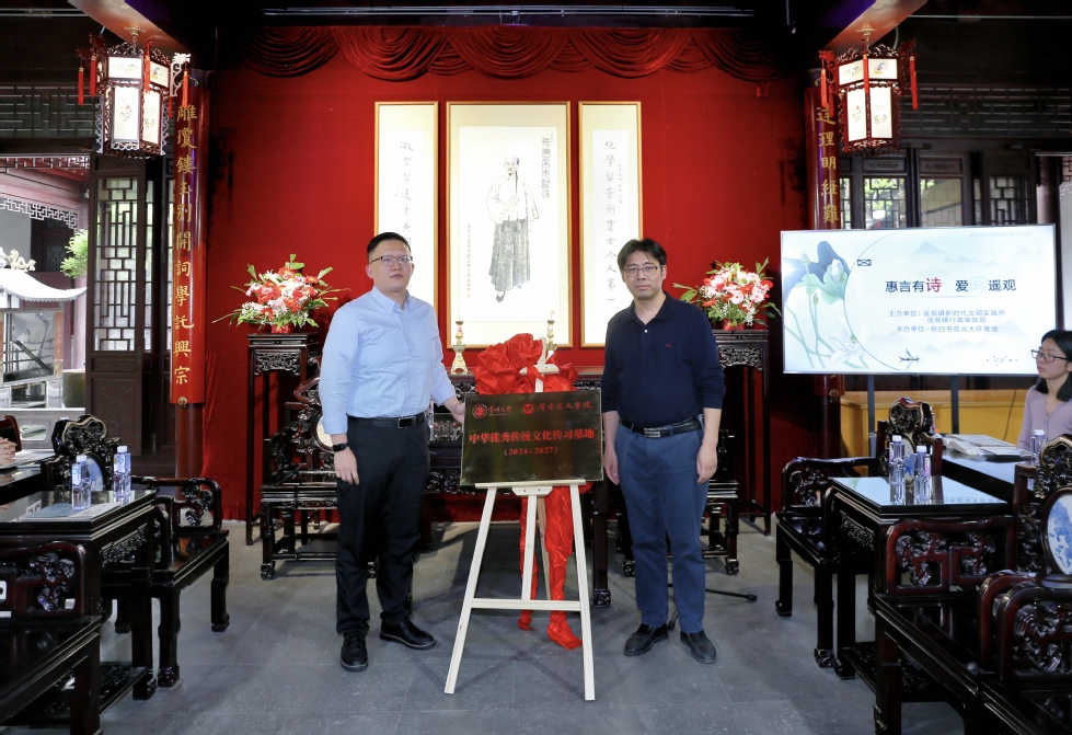 活动中,牟晓彤和葛金华分别致辞并为“中华优秀传统文化传习基地”揭牌。葛金华向张宏成赠送了学院教师编撰的《江苏地方文化史·常州卷》。王风丽作“张惠言与常州词派”专题讲座,详细讲解了常州词派的历史脉络与发展过程,以及张惠言在常州词派、阳湖文派发展中的独创精神和突出贡献。葛金华指出,张惠言与常州先贤共创的文学流派不仅在清代影响巨大,其援经入词、高扬词体的思想,事事当争第一流的追求,更有超越性,影响远及当代。所以在张惠言纪念馆讲张惠言,建传习基地既切题,又有意义。