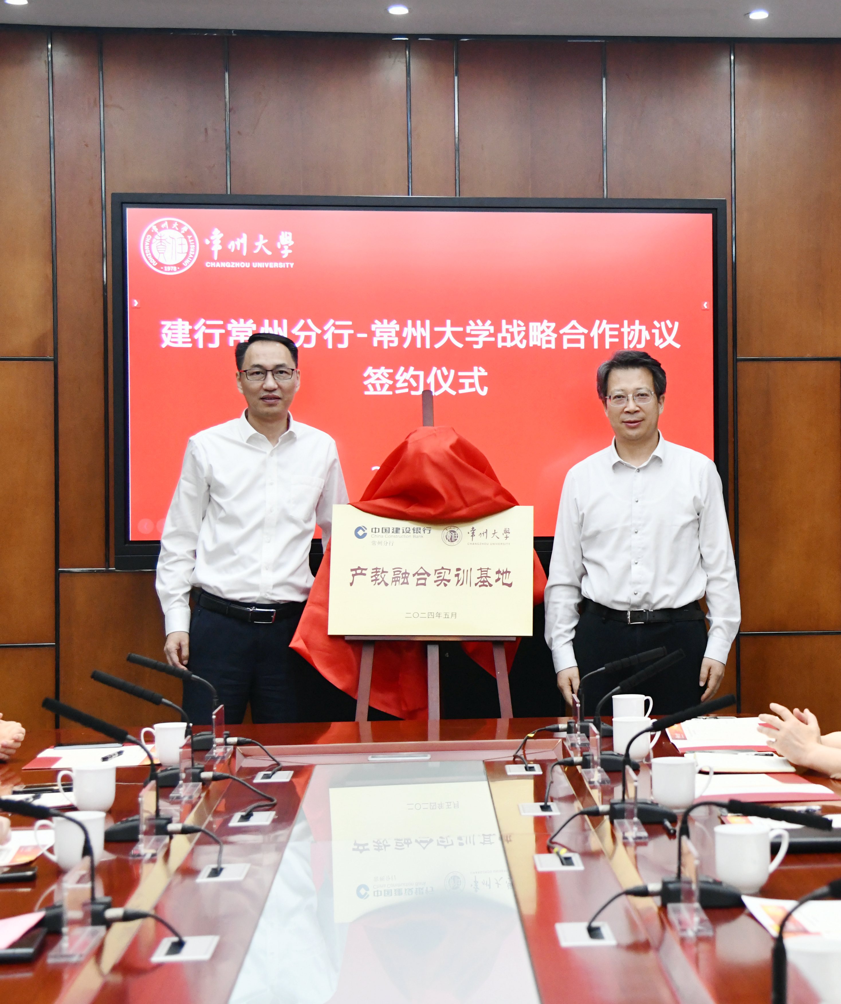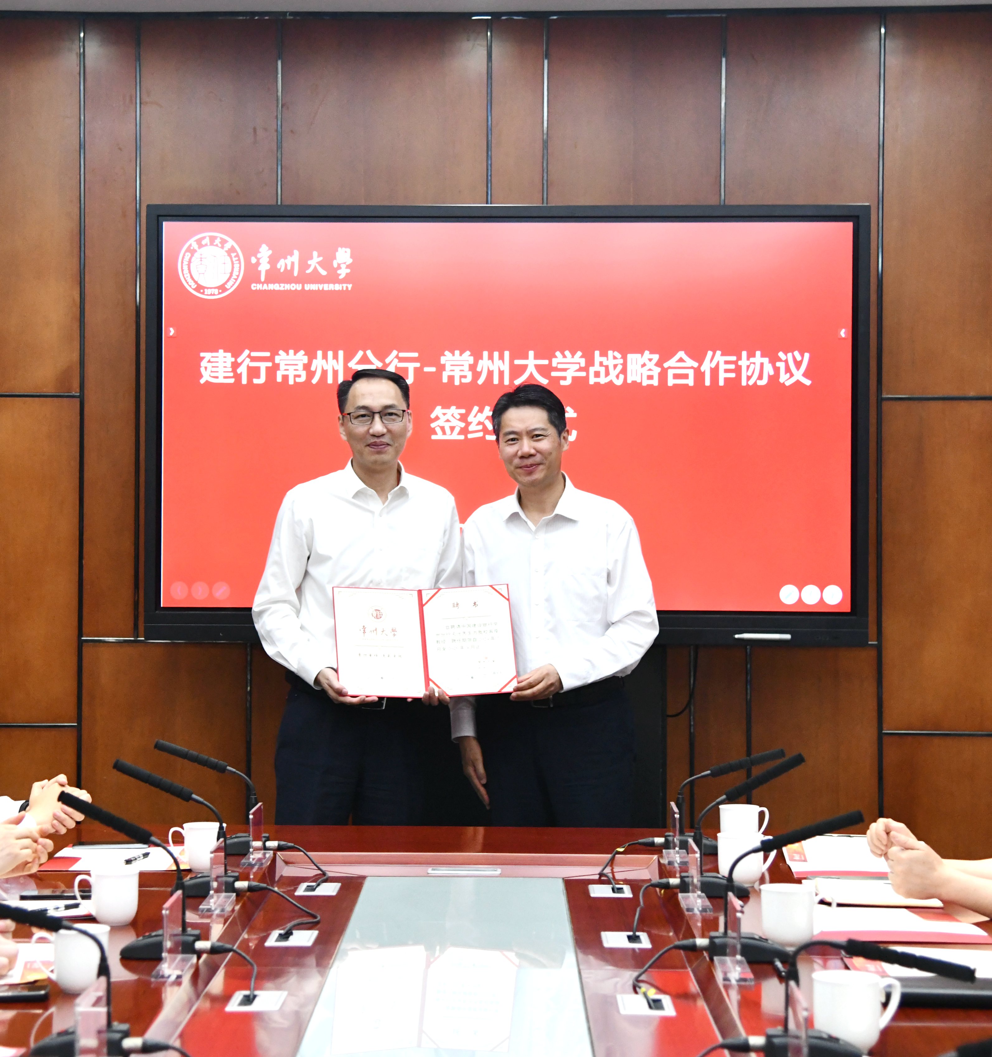 5月23日,中国建设银行常州分行(以下简称“建行常州分行”)与常州大学战略合作协议签约仪式在我校举行。建行常州分行党委书记、行长吴迪,党委委员、副行长沈晓东,常州大学党委书记徐守坤,党委副书记、校长陈海群,党委常委、副校长周刚出席签约仪式。建行常州分行和学校相关部门负责人参加签约活动。沈晓东和周刚代表双方签订战略合作协议。