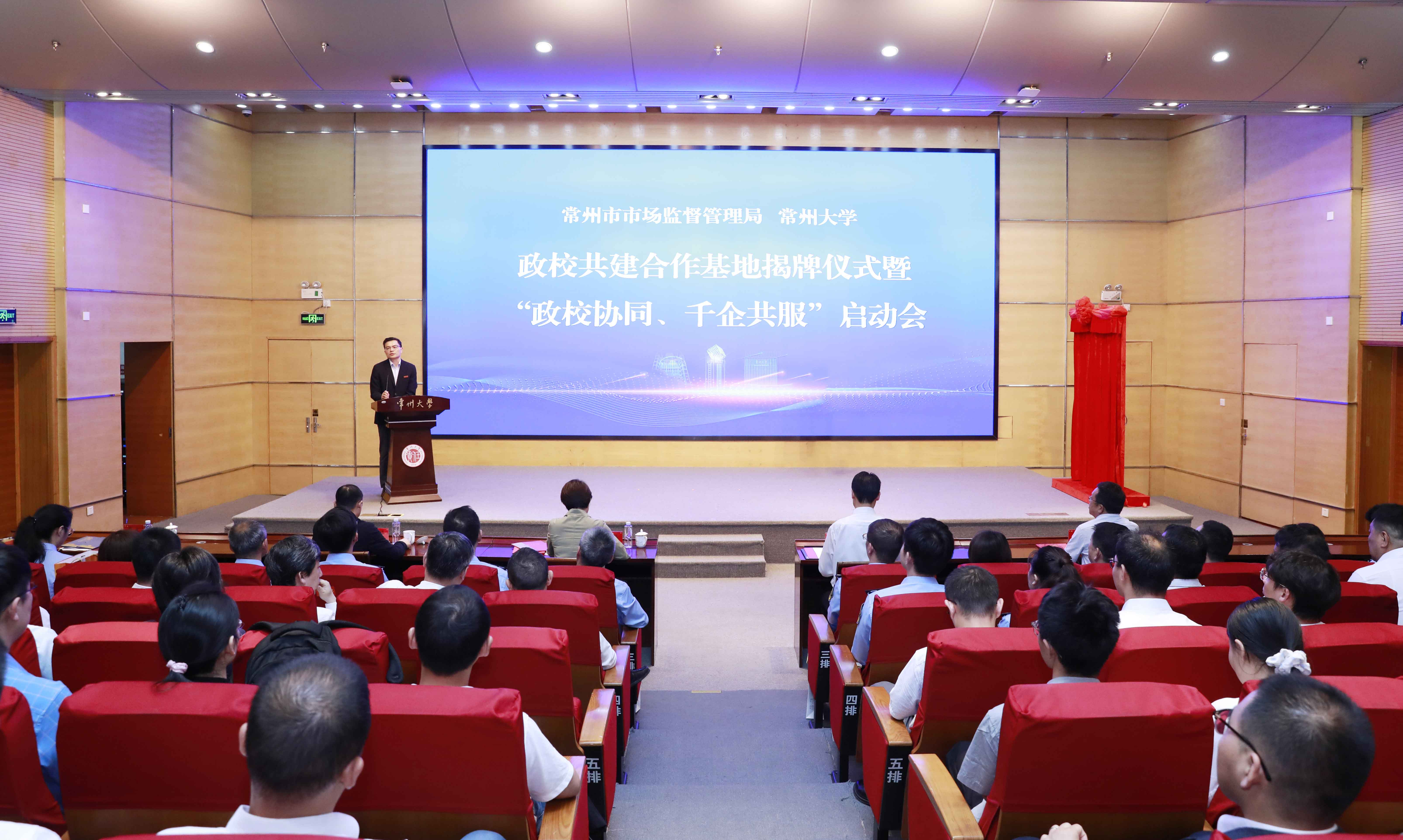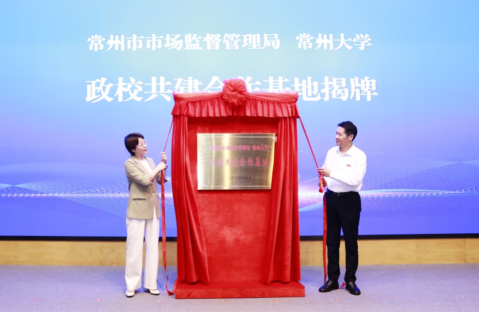 5月24日,常州市市场监督管理局与常州大学政校共建合作基地揭牌仪式暨“政校协同、千企共服”启动会在我校举行。常州市市场监督管理局党组书记、局长吴小华,党组成员、副局长王冰,办公室主任兼综合处处长陈威,常州四药制药有限公司董事长范新华,常州大学党委副书记、校长陈海群,副校长晏成林出席会议。市场监管局部分处室和各辖市区局、常州经开区局的领导,以及学校相关部门、学院负责人、“驻企导航员”教师代表参加活动。晏成林主持会议。