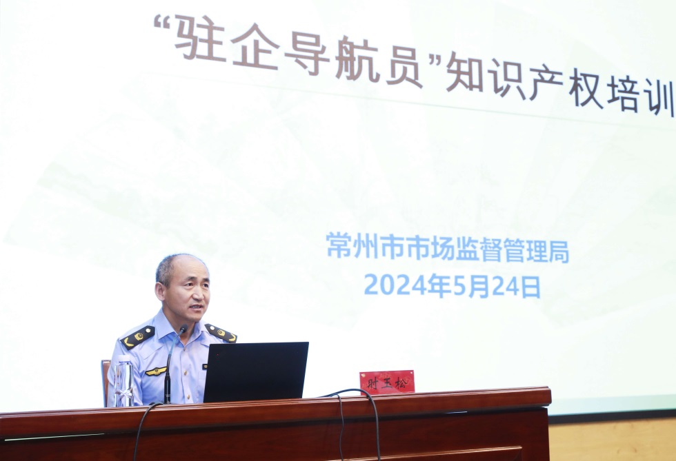 揭牌仪式及启动会后,常州市市场监督管理局知识产权发展处处长时玉松做“驻企导航员”知识产权培训讲座。