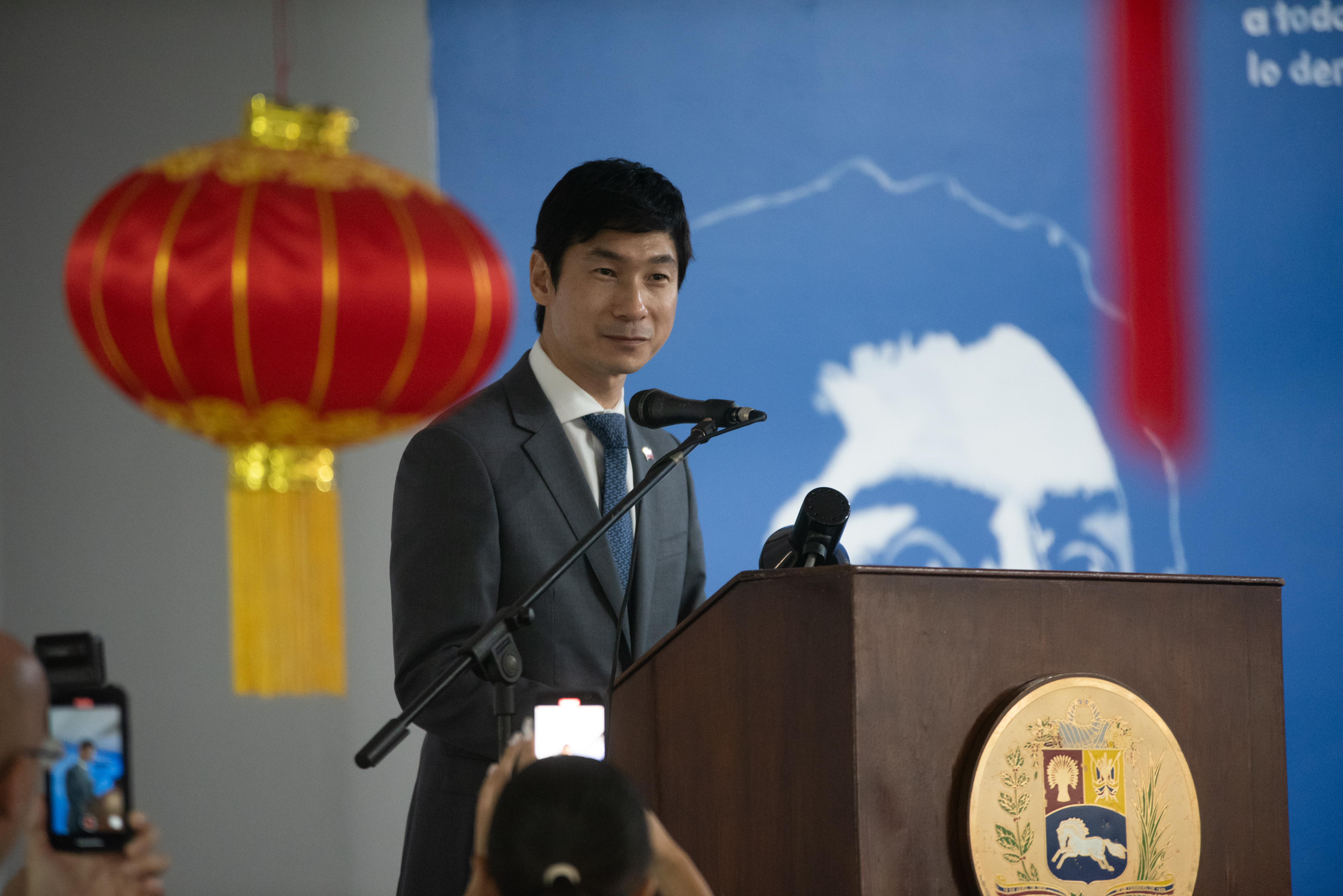中国驻委内瑞拉大使蓝虎,委内瑞拉玻利瓦尔大学副校长Jenifer Gil,中国石油拉美公司总经理黄革,中信建设委内瑞拉国别区总经理崔俊燕,中铁十局拉美公司总经理柳林,委内瑞拉全国华侨华人联合总会代表第一副主席李国忠,委内瑞拉中国研究中心主任Aymara Gerdel,委内瑞拉玻利瓦尔大学文化部部长Berenice del Moral,副部长、办公室东亚和南亚事务协调处一秘Jhon Marín,亚拉奎中华会馆主席、亚拉奎中西文学校董事长梁焕年,委内瑞拉上将、前国立玻利瓦尔武装力量实验理工大学校长Angiolíllo Fernández,中国驻委内瑞拉大使馆文化专员王瑀楠等嘉宾与委内孔院师生代表齐聚委内瑞拉玻利瓦尔大学西蒙玻利瓦尔报告厅参加活动。