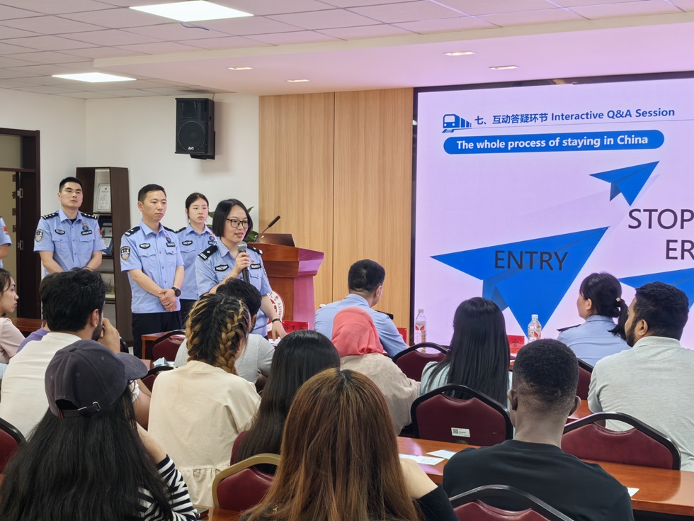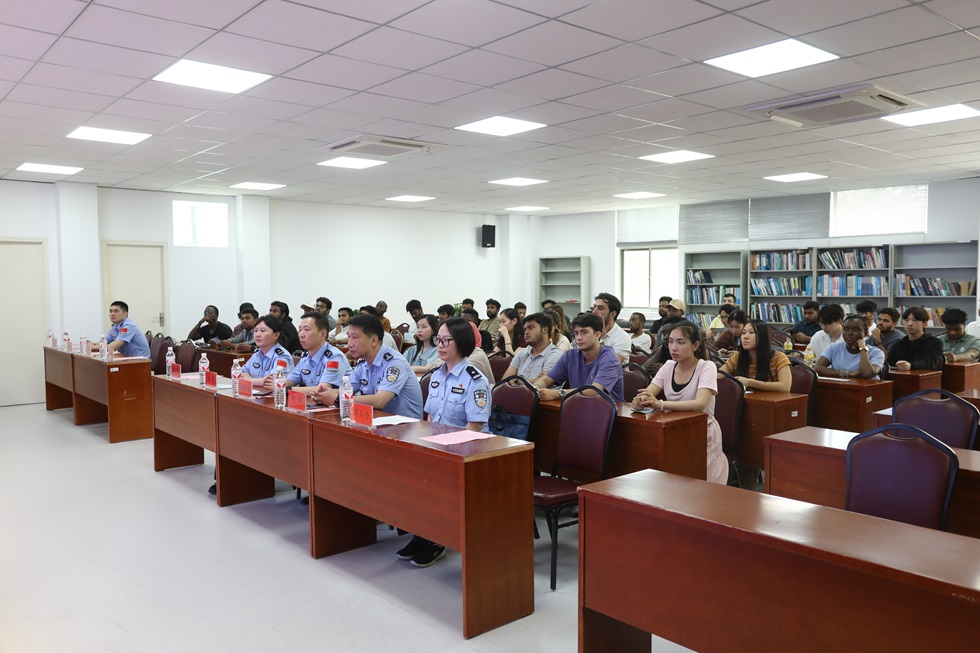 6月12日,常州机场出入境边防检查站和常州市公安局武进分局出入境管理大队应邀来校为外国留学生开展“在华全流程”专题讲座。