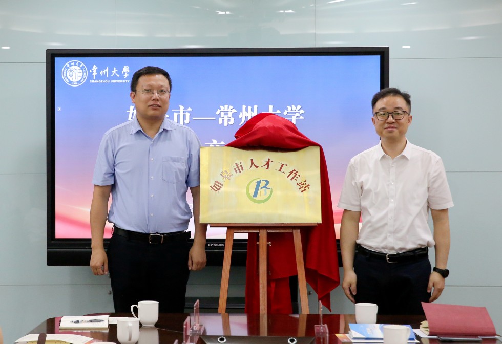 会上,郭超和周刚共同为“如皋市(常州大学)人才工作站”揭牌。参会人员就产学研合作、人才工作、就业工作等进行了深入探讨。