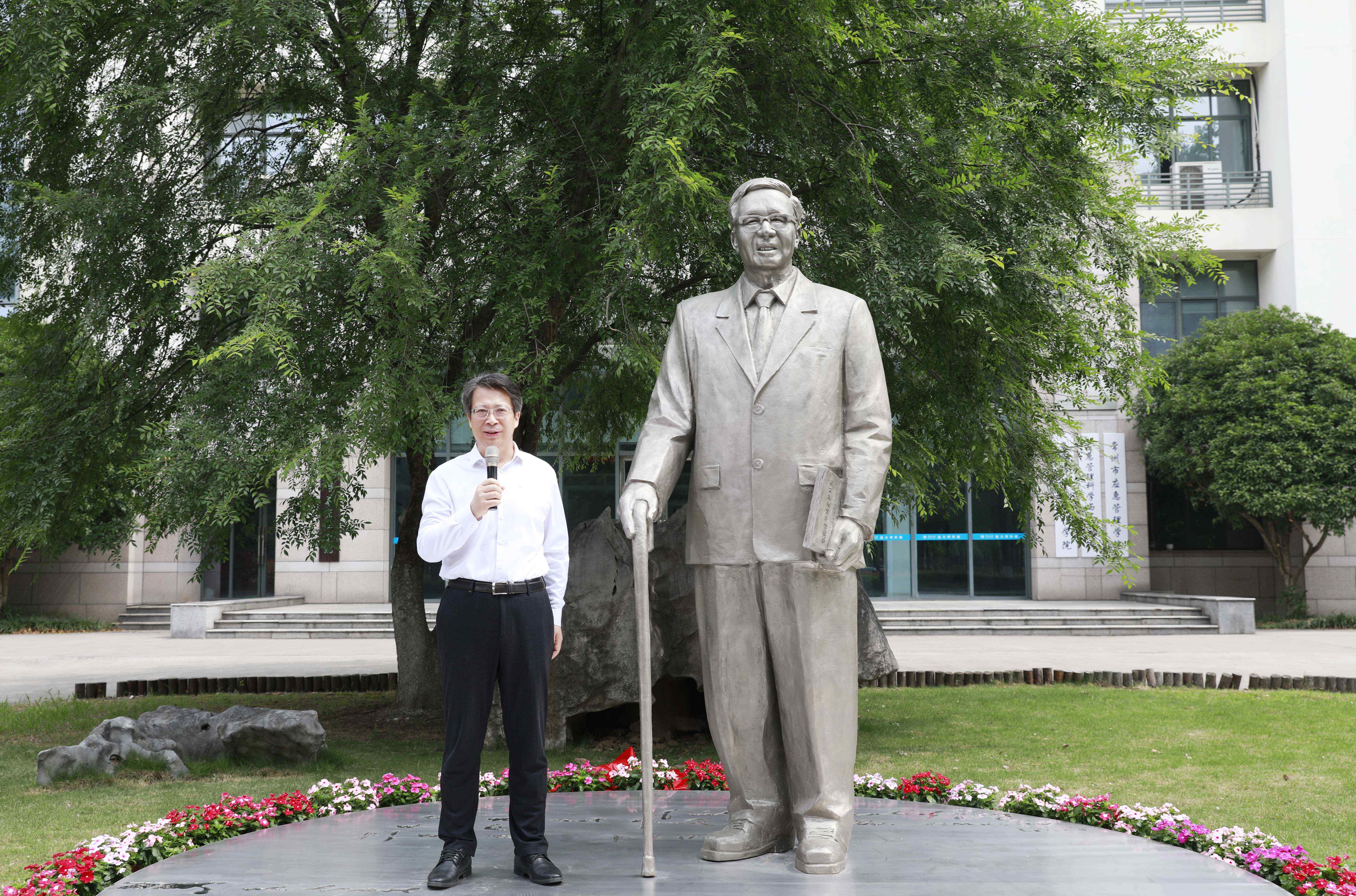 6月15日上午,华罗庚先生雕像落成揭幕仪式在科教城校区逸夫楼南门前举行。华罗庚先生家属华密女士、张小冲先生、张震先生,雕像作者、捐赠者冷天明,民盟常州市委专职副主委兼秘书长张翠娥、民盟经济三支部主委赵娟,校党委书记徐守坤,党委常委、副校长李忠玉,党委常委、宣传部部长薛冰,教务处、学工处负责人、华罗庚学院全体教师及部分学生出席揭幕仪式。学院党总支书记宣慧主持仪式。