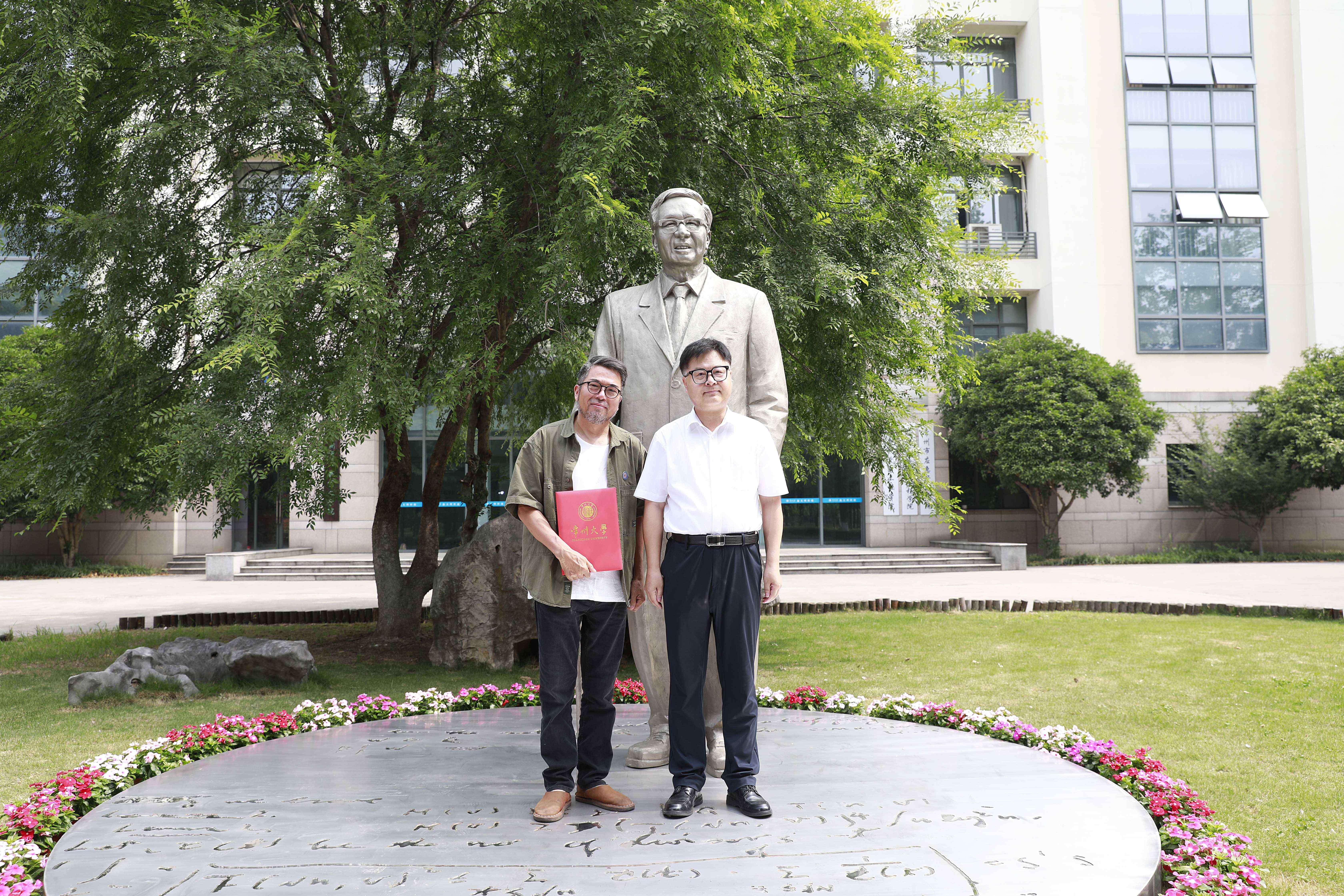 冷天明阐述了雕像的设计理念及其艺术内涵。李忠玉为冷天明颁发捐赠证书。(通讯员/洪逸群 审核/宣慧 编辑/庄媛)
