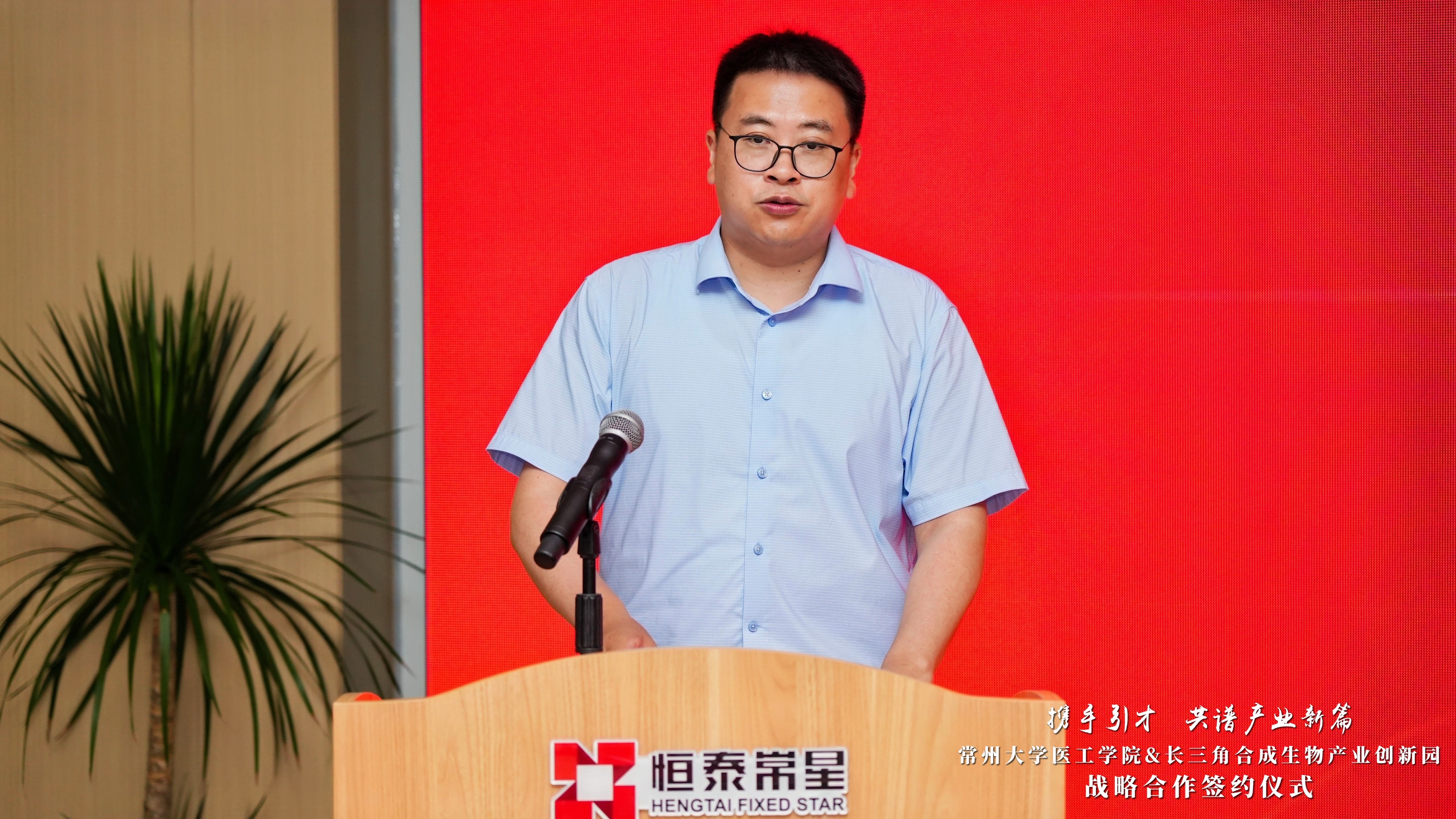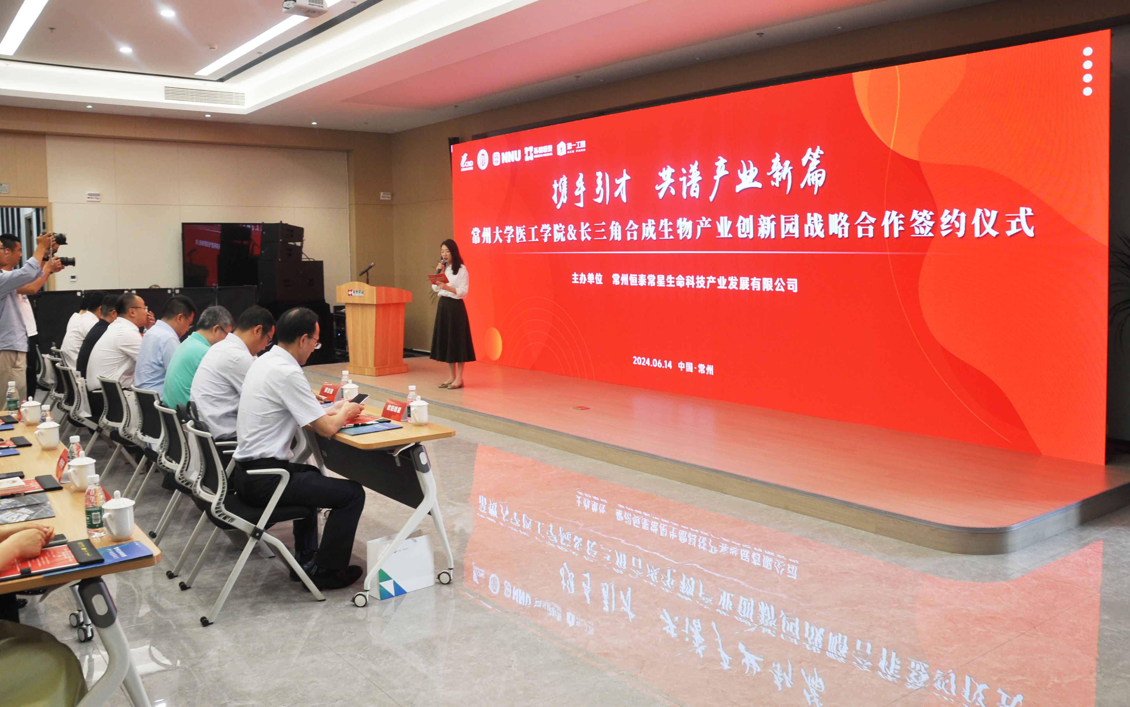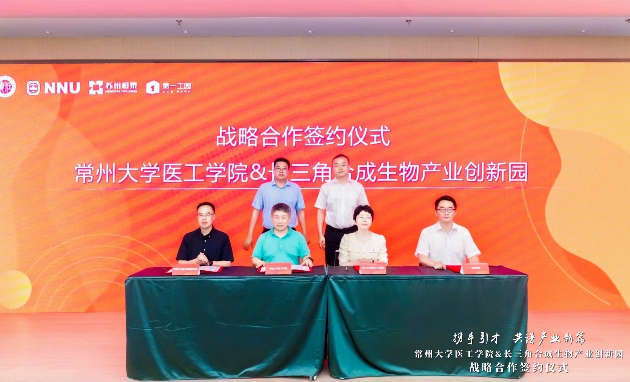 6月14日下午,常州大学医学与健康工程学院-长三角合成生物产业创新园战略合作签约仪式在常州生命健康产业园区长三角合成生物产业创新园举行。常州大学党委常委、副校长李亚飞,薛家镇镇长高翔,党委副书记、政协工委主任金玲芝,副镇长胡郁,恒泰常星董事长、总经理陈一雷出席活动。常州大学医学与健康工程学院负责人及学院教师参加活动。