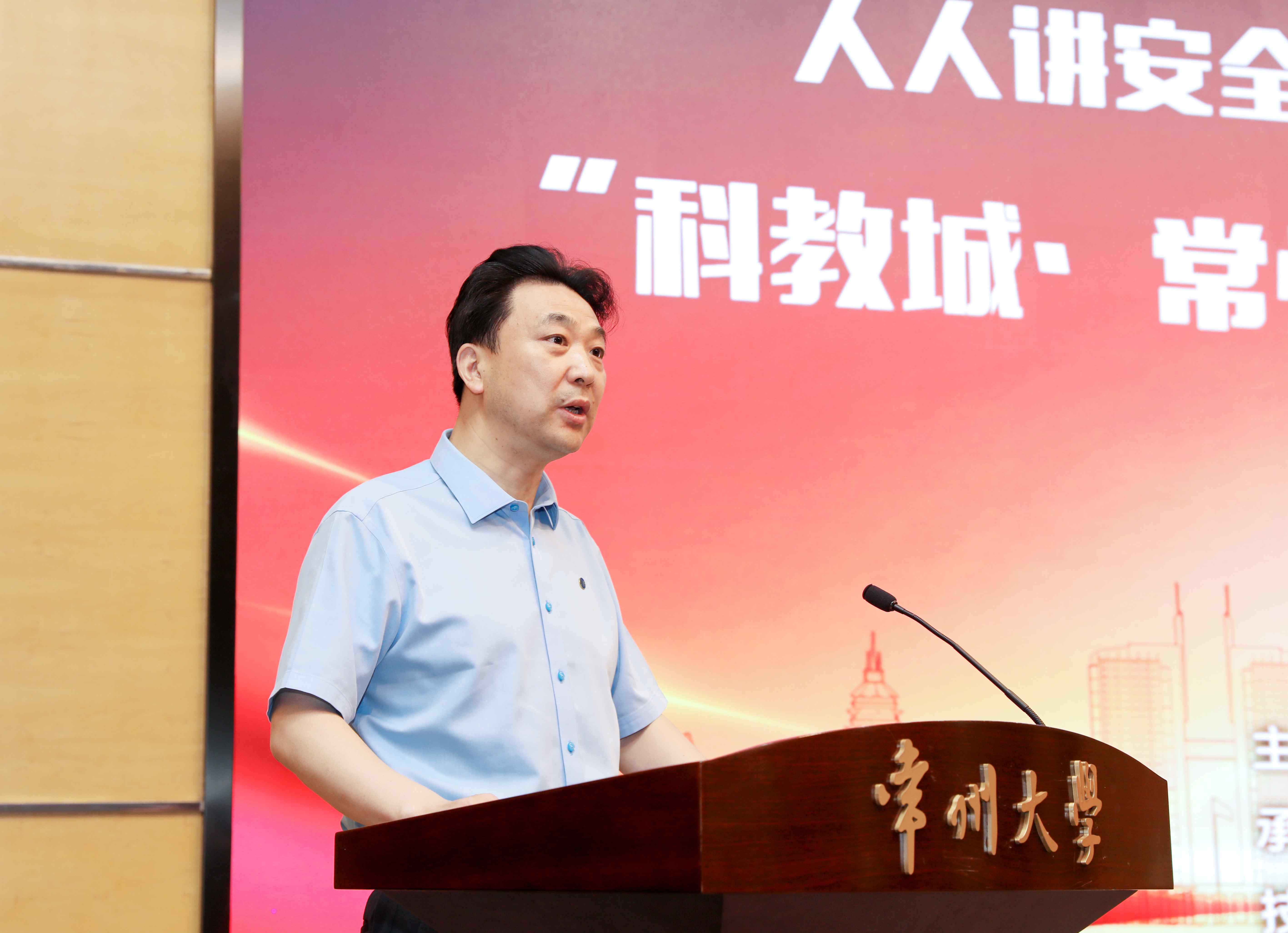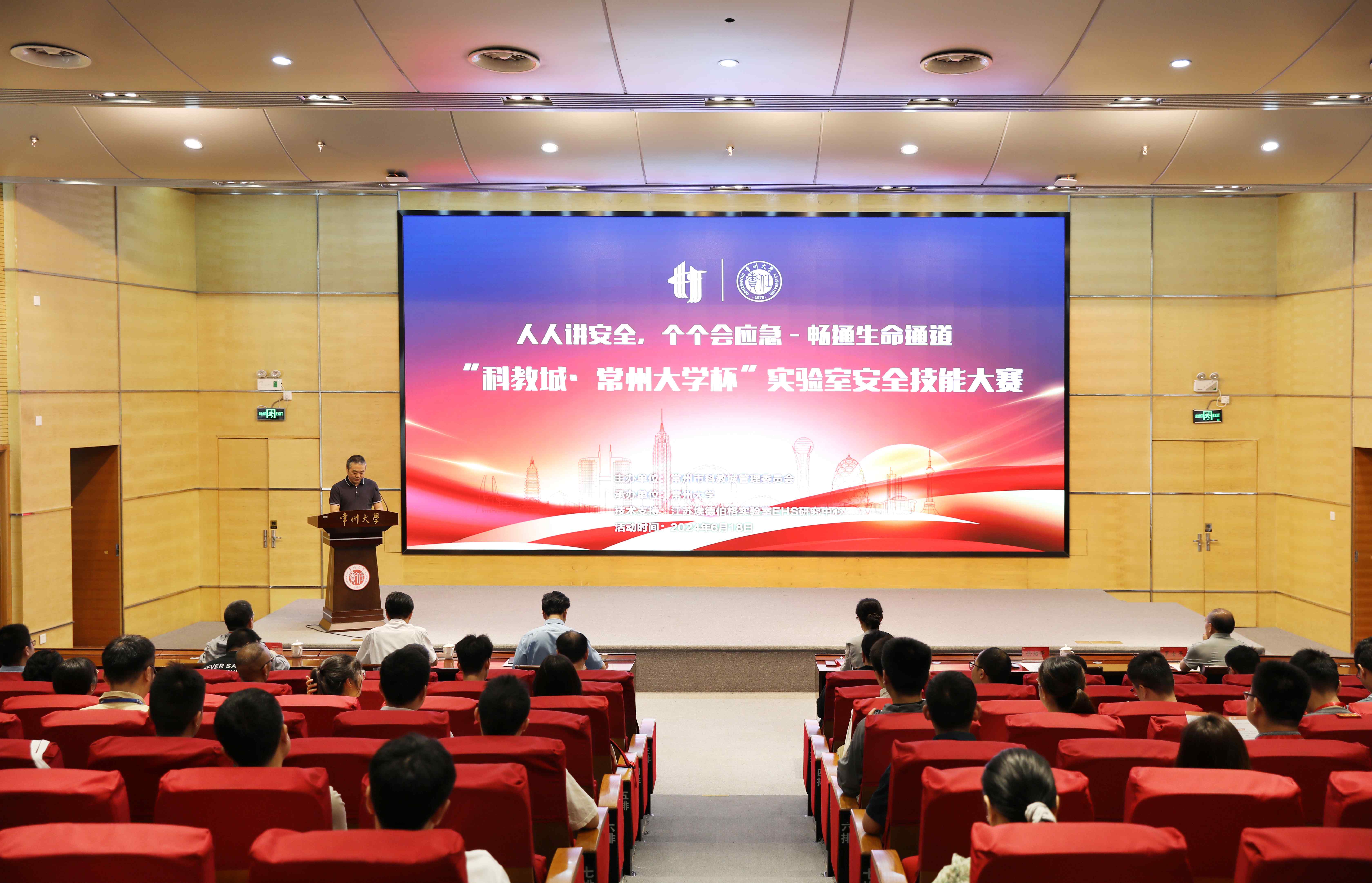 为深入宣传贯彻党的二十大精神和习近平总书记关于安全生产重要论述,响应国家安全生产月的号召,全面提升广大师生员工实验室安全素养和应急技能,推动安全理念入脑入心,进一步夯实园区及校园安全,6月18日,科教城管委会和我校在科教城校区联合举办“科教城·常州大学杯”实验室安全技能大赛。大赛吸引了科教城内多所高校及企业45支队伍135人通过“实战化”演练和“沉浸式”比赛等考核形式展开激烈角逐。科教城党工委委员、管委会副主任刘建荣,常州大学党委常委、副校长彭明国出席大赛开幕式。科教城管委会安全环保处处长徐绍锋主持开幕式。
