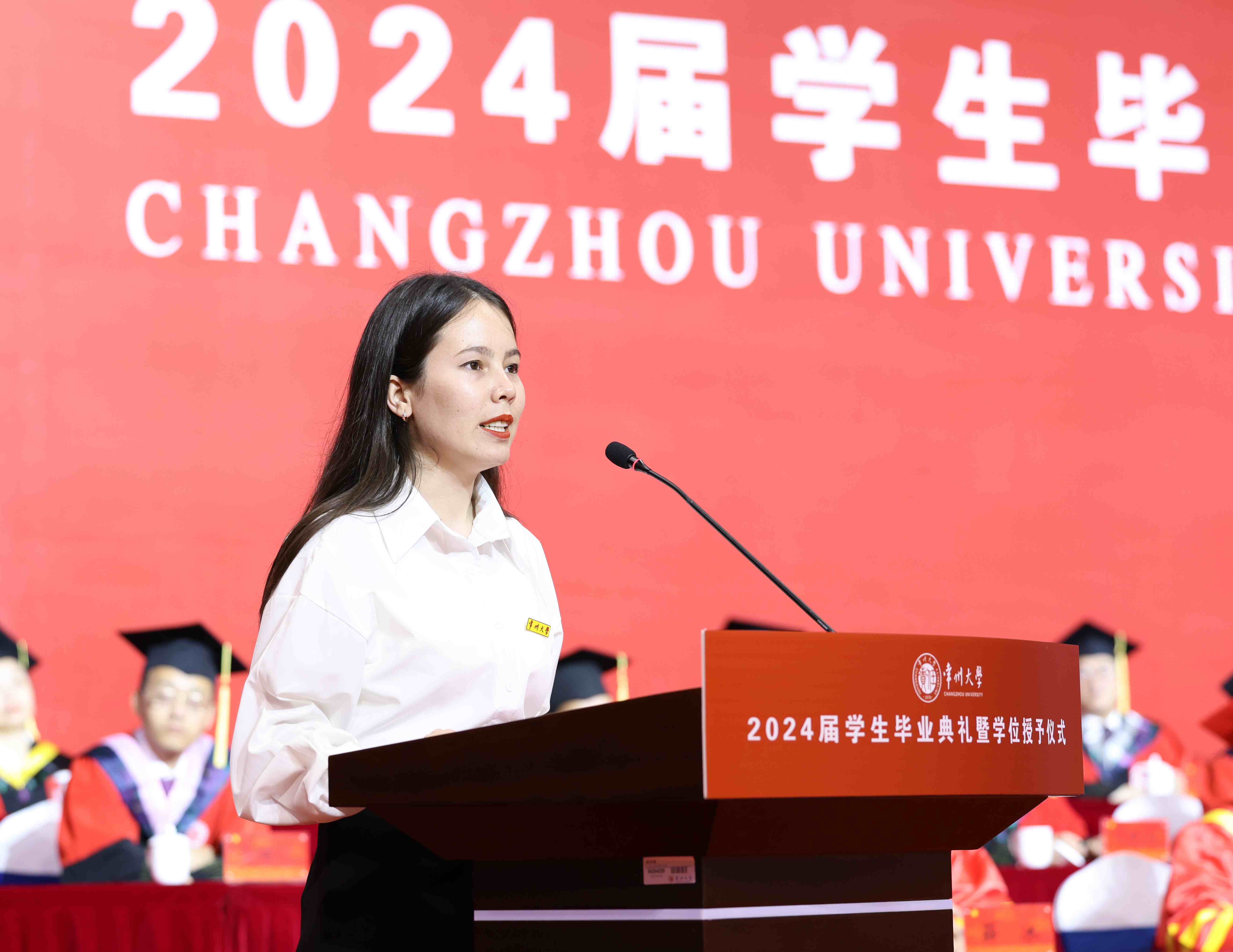 瞿秋白政府管理学院崔福缘、石油化工学院邓修政和商学院、刘国钧管理学院美莎分别作为本科生代表、研究生代表和留学生代表发言。学生代表们回顾了在常大携手奋进的峥嵘岁月,号召毕业生们不惧风雨、勇担重任,继续拼搏奋进,在各行业发光发热。