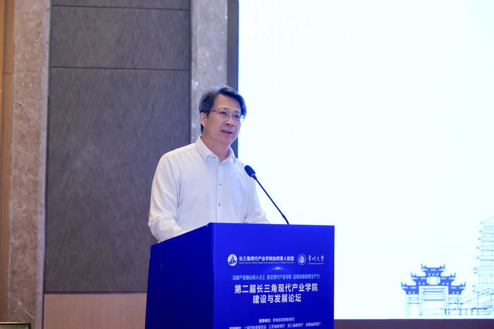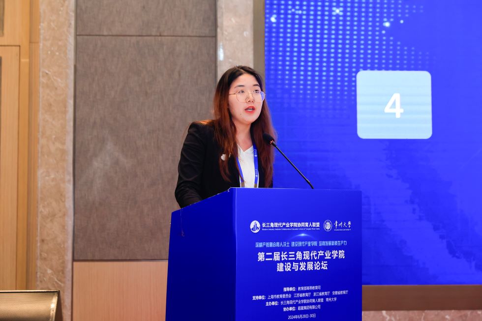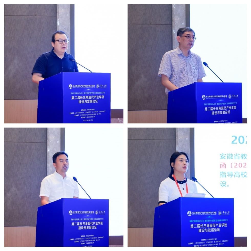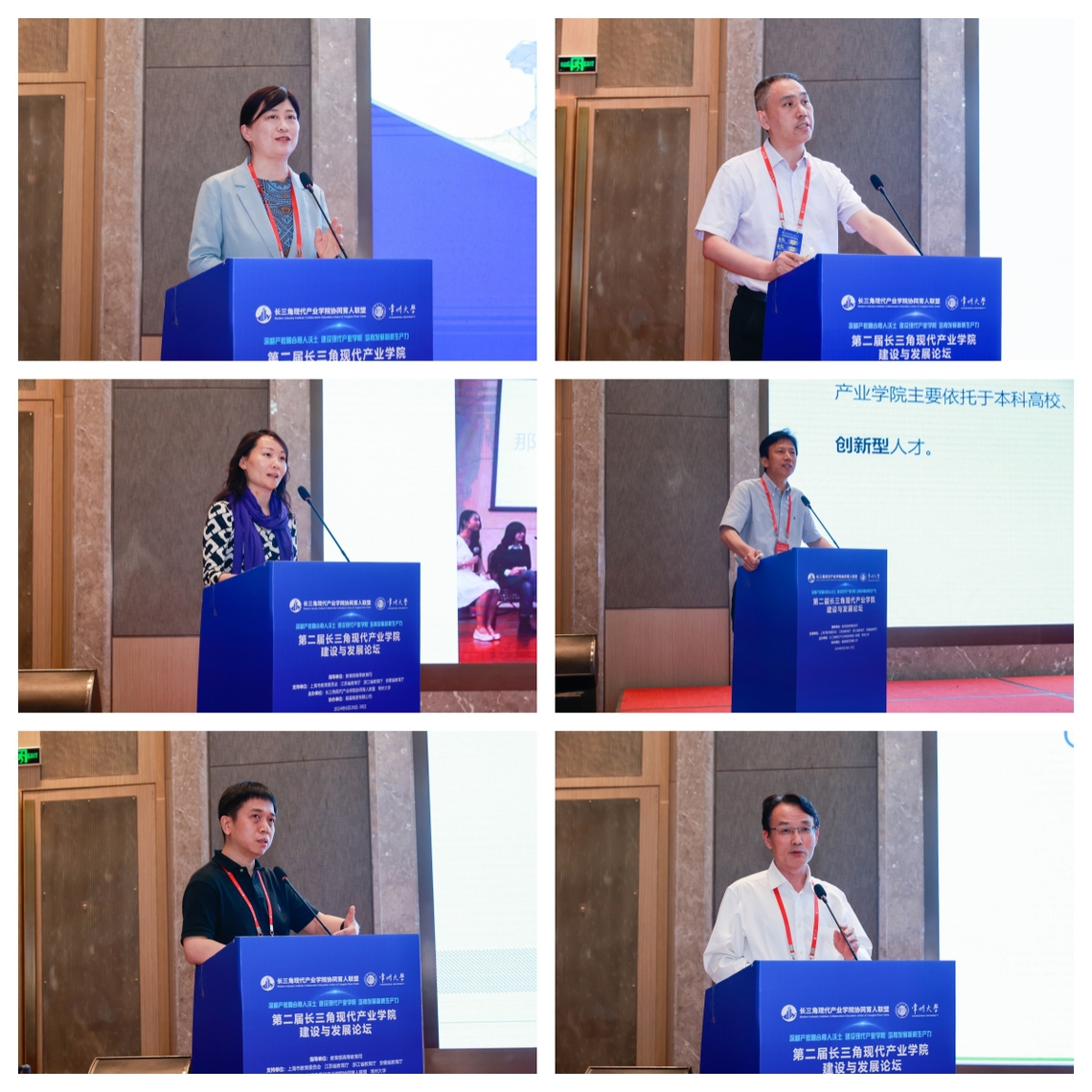 论坛报告环节,西南交通大学中车时代微电子学院执行院长郝莉作题为《高等工程教育改革背景下现代产业学院建设的思考与实践》,南京工业大学2011膜产业学院院长顾学红作题为《科产教协同育人赋能新质生产力路径探索》、浙江省教育厅职业教育与成人教育处调研员侯蔚作题为《人工智能时代长三角区域校企政投协同发展路径探索》,华东理工大学现代生物医药产业联合学院副院长刘金库作题为《前瞻思维融合优势资源,打造特色现代产业学院》,浙江工业大学数字化制造产业学院副院长裴植作题为《新工科背景下国家级现代产业学院建设的创新思考与实践》,安徽工程大学机器人现代产业学院院长许德章作题为《机器人工程专业实践教学体系构建和实践基地建设》,温州医科大学眼视光产业学院执行院长陈洁作题为《温州医科大学眼视光产业学院建设探索与实践》,盐城工学院党委常委、副校长王伟作题为《依托产业学院深化课程改革-盐城工学院应用型人才培养实践》,常州大学党委常委、副校长李忠玉作题为《现代产业学院建设的探索与实践》的大会报告。
